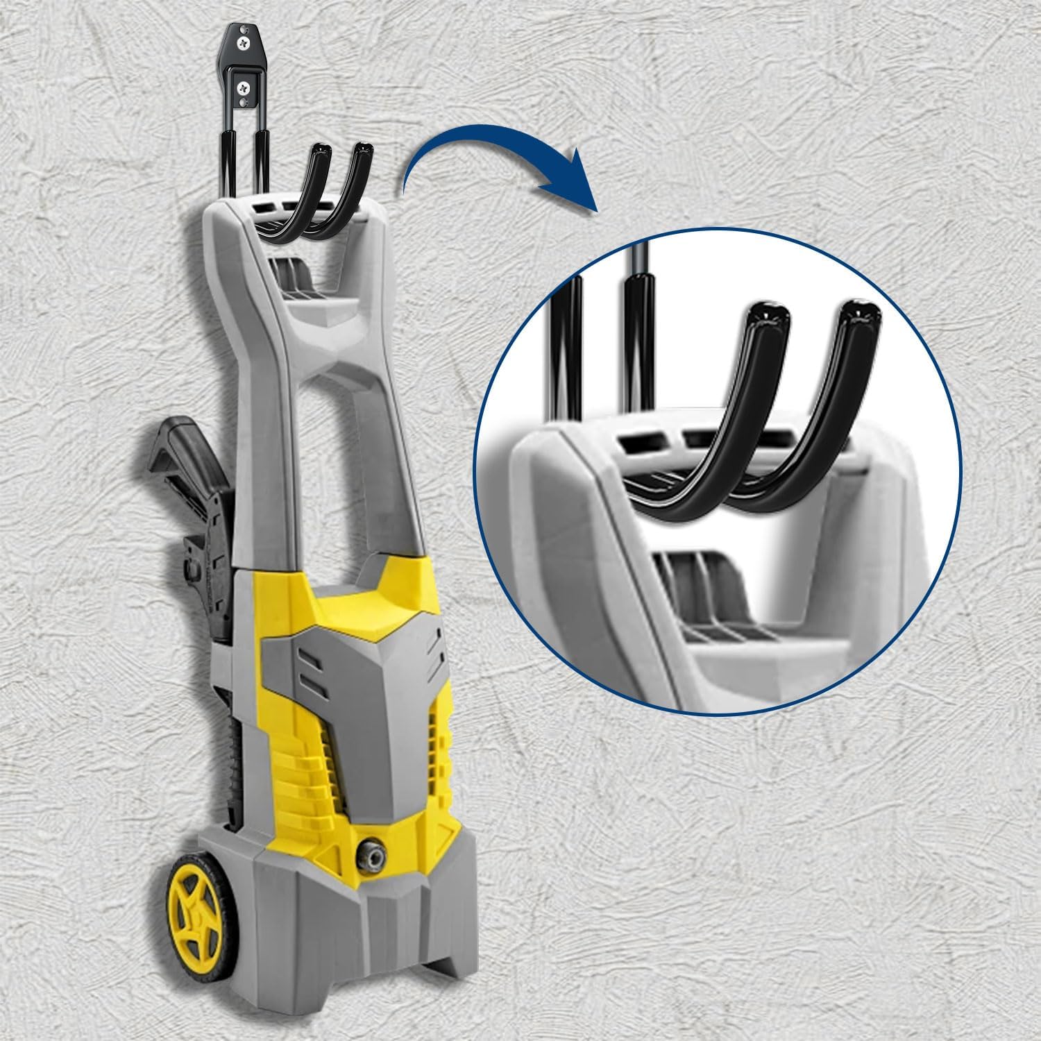 - Premium Quality Hose Hook: Our wall mount hose holder, featuring 3 reinforced welding spots, boasts a robust solid steel body that ensures exceptional sturdiness and durability. The garden hose hook’s dual arm design can securely hold heavy yard tools, supporting up to 70 lbs. Keep your hoses off the ground and free from tangles, crimps, and kinks with our garden hose hangers for outside