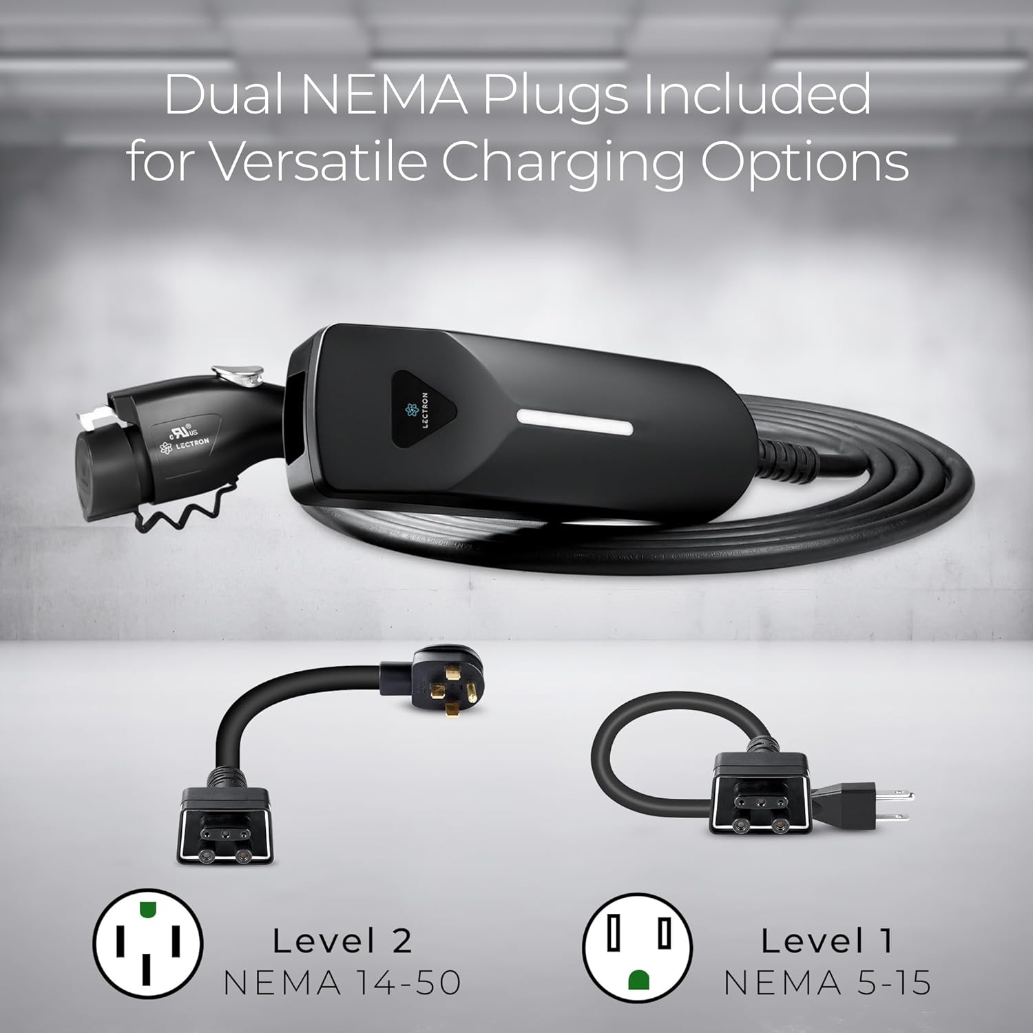 Lectron Level 1 / Level 2 EV Charger (12 Amp / 40 Amp) with Dual Charging Plugs (NEMA 5-15 & 14-50) - Portable Electric Car Charger Compatible with All J1772 EVs (Black)