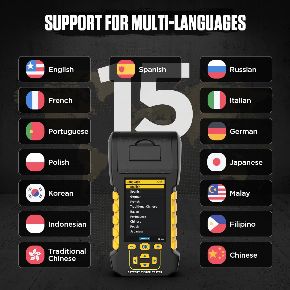 - Charging System Testing Function:Tests various components of the charging system, including the alternator, rectifier, and rectifier diode. Monitors the working output status of the charging system to obtain reliable charging voltage values