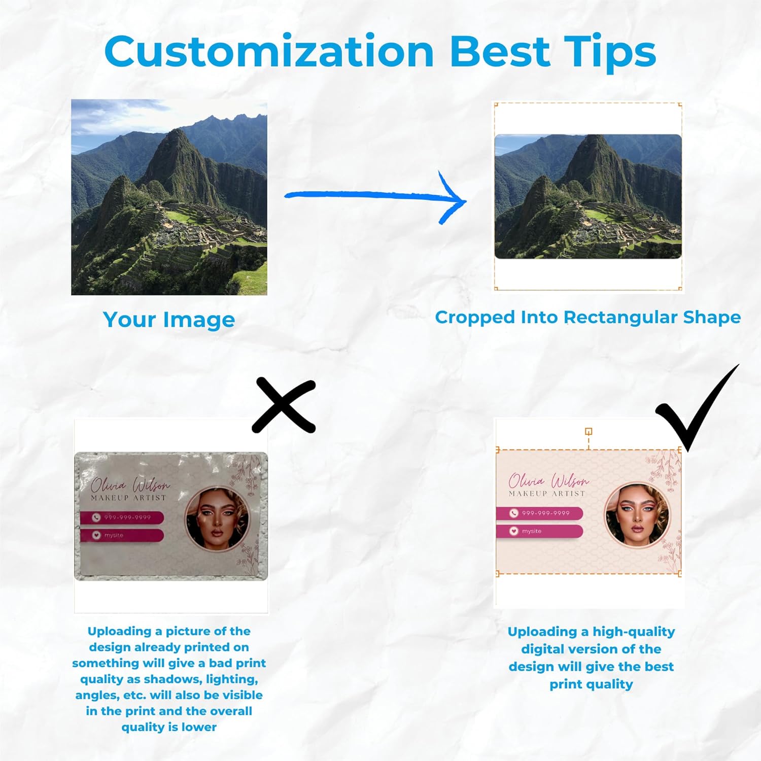 - How to Customize — By clicking on "Customize Now" you can access the customization options available. You can add your own design, or choose from our pre-made business templates and add your text. To ensure a good print quality, please make sure the image that is uploaded is a digital version of the design in a high-quality, 300 DPI file. Feel free to let us know if you have any questions about the final result or how to personalize your customizable magnets.