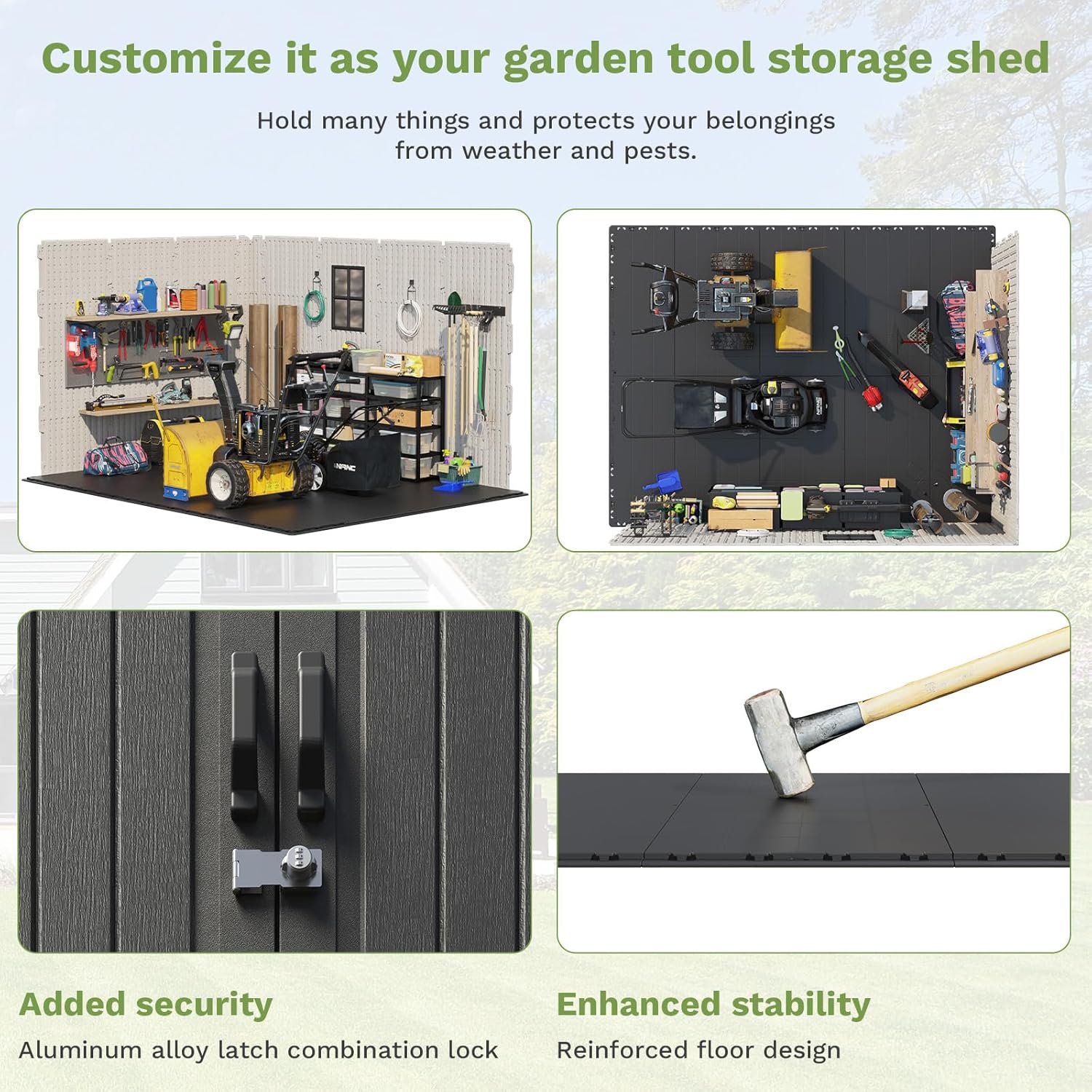 - Oversized Storage Space: Our shed is designed in 116.8"D x 91.3"W x 94.5"H, provides ample storage for a wide range of items, from gardening tools and equipment to bicycles, sports gear and outdoor furniture. It will fulfill your most outdoor storage needs and is a great addition to your patio.