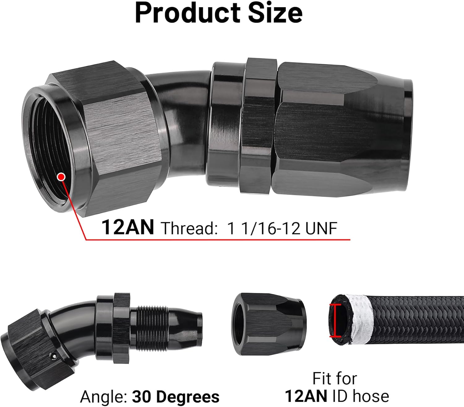 - Size: The thread size of 12AN is 1 1/16-12 UNF. The AN side is sealed by a 37 degree angle