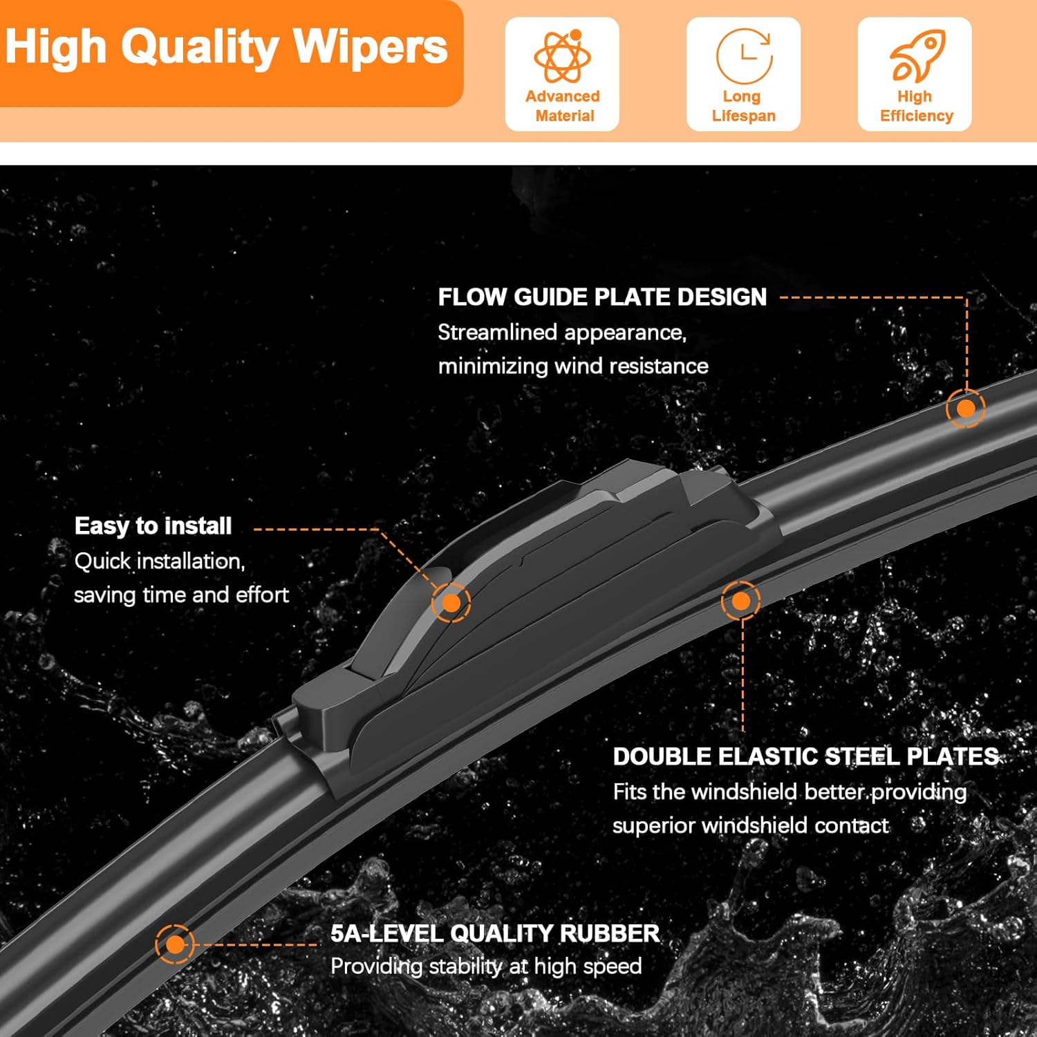 - 【Dual Steel Springs】Galvanized memory metal shrapnel, 2,000 force points to make the wiper fit seamlessly into the windshield.