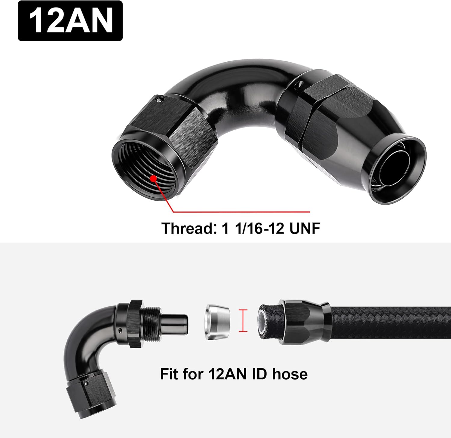 - [Built to Last] The one-piece PTFE hose end fitting is made from lightweight 6061-T6 aluminum alloy, and a black anodized finish on the surface increases durability, anti-corrosion, and wear resistance.