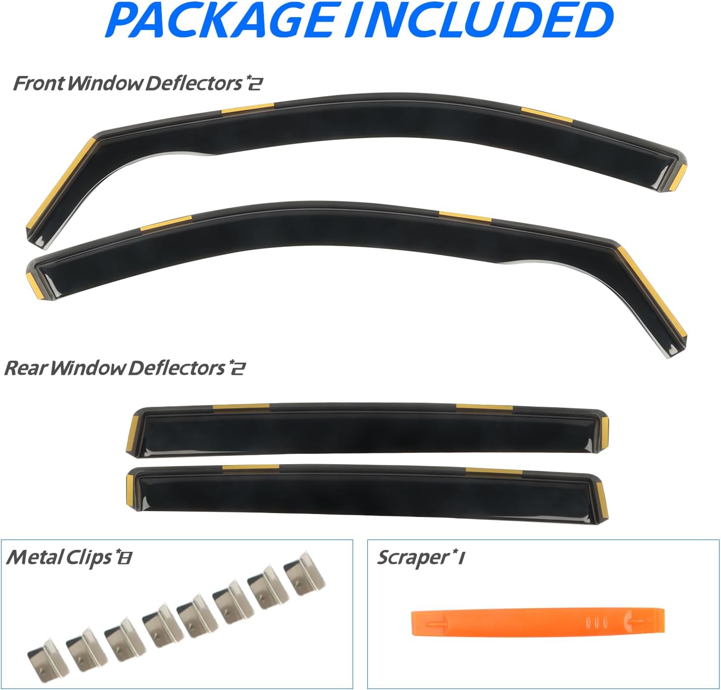 - EASY INSTALLATION: Our IN CHANNEL vent window visors come with all the necessary tools for a durable and secure installation. No complicated instructions are needed. Attention: Please apply the clip to fix the rain guards