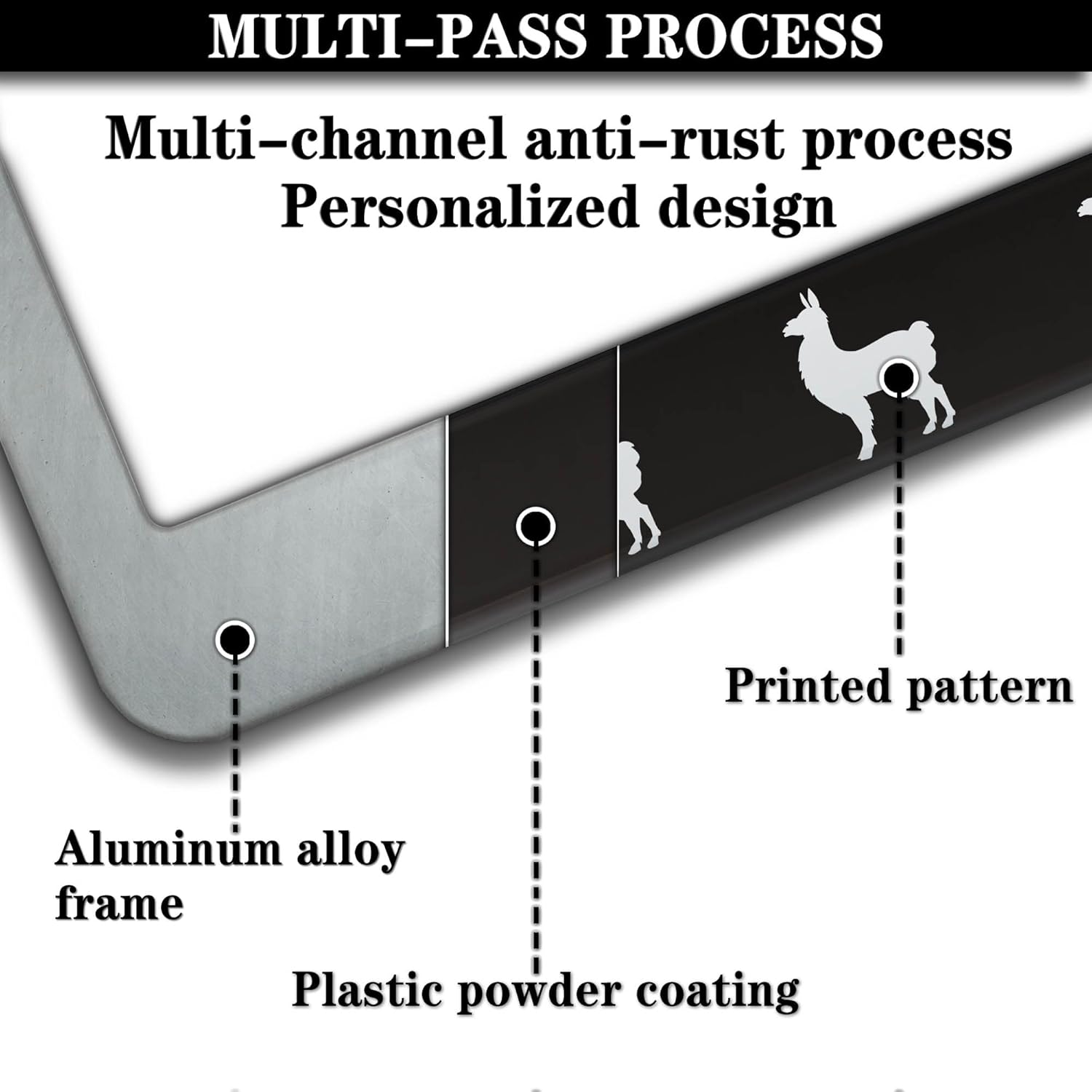 License Plate Frames Black and White Automotive Exterior Accessories Llama Aluminum Metal Car Accessory 2 Pack with Screw Covers Set