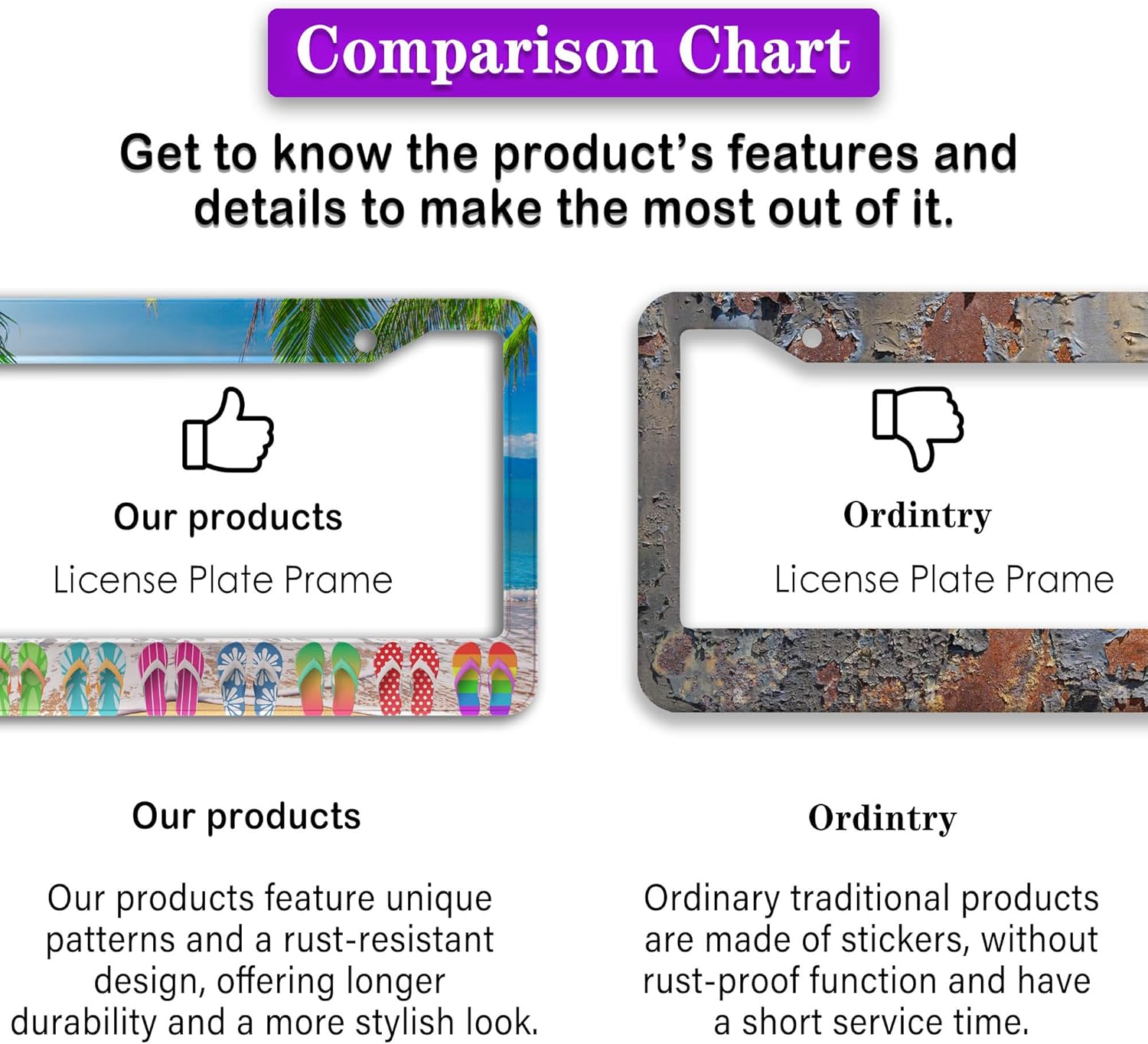 - ALUMINUM FRAME: This License Plate Frame is crafted from high-quality aluminum that is resistant to corrosion, rust, and harsh weather conditions. Its rugged reliability design ensures a long lifespan, making it capable of withstanding car washes and extreme weather, providing you with a reliable and stylish solution for your vehicle.