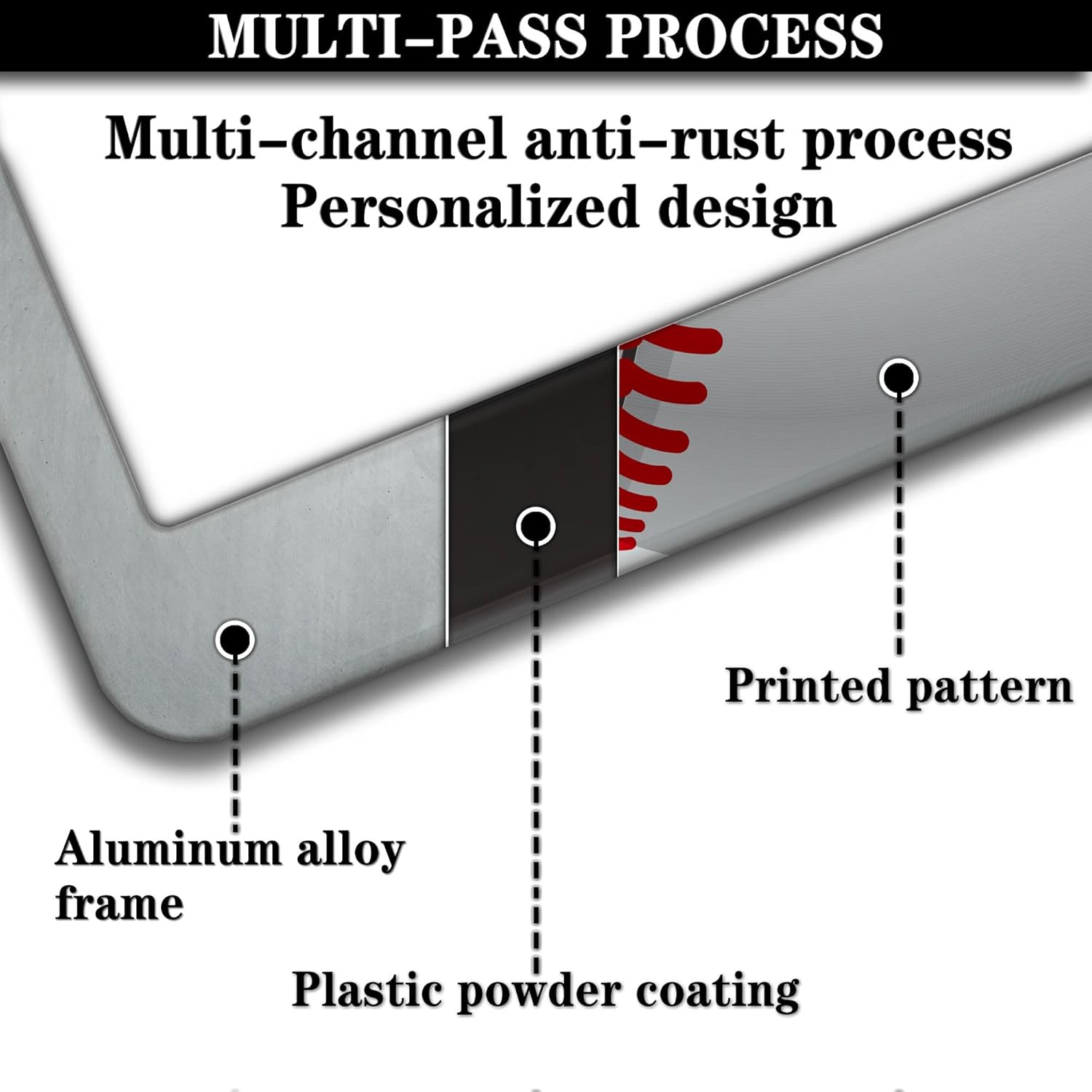 License Plate Frames for Men Red and White License Plate Cover for Women Baseball Texture Aluminum Metal Car Accessory 2 Pack with Screw Covers Set