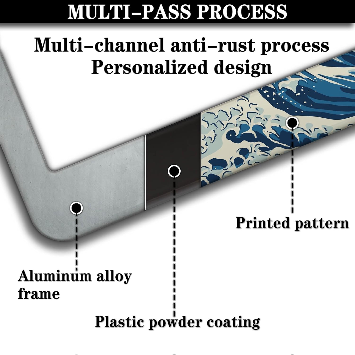Car Plate Frames for Women Multicolor License Plate Protector for Men Starry Night Big Wave Aluminum Metal Car Accessory 2 Pack with Screw Covers Set