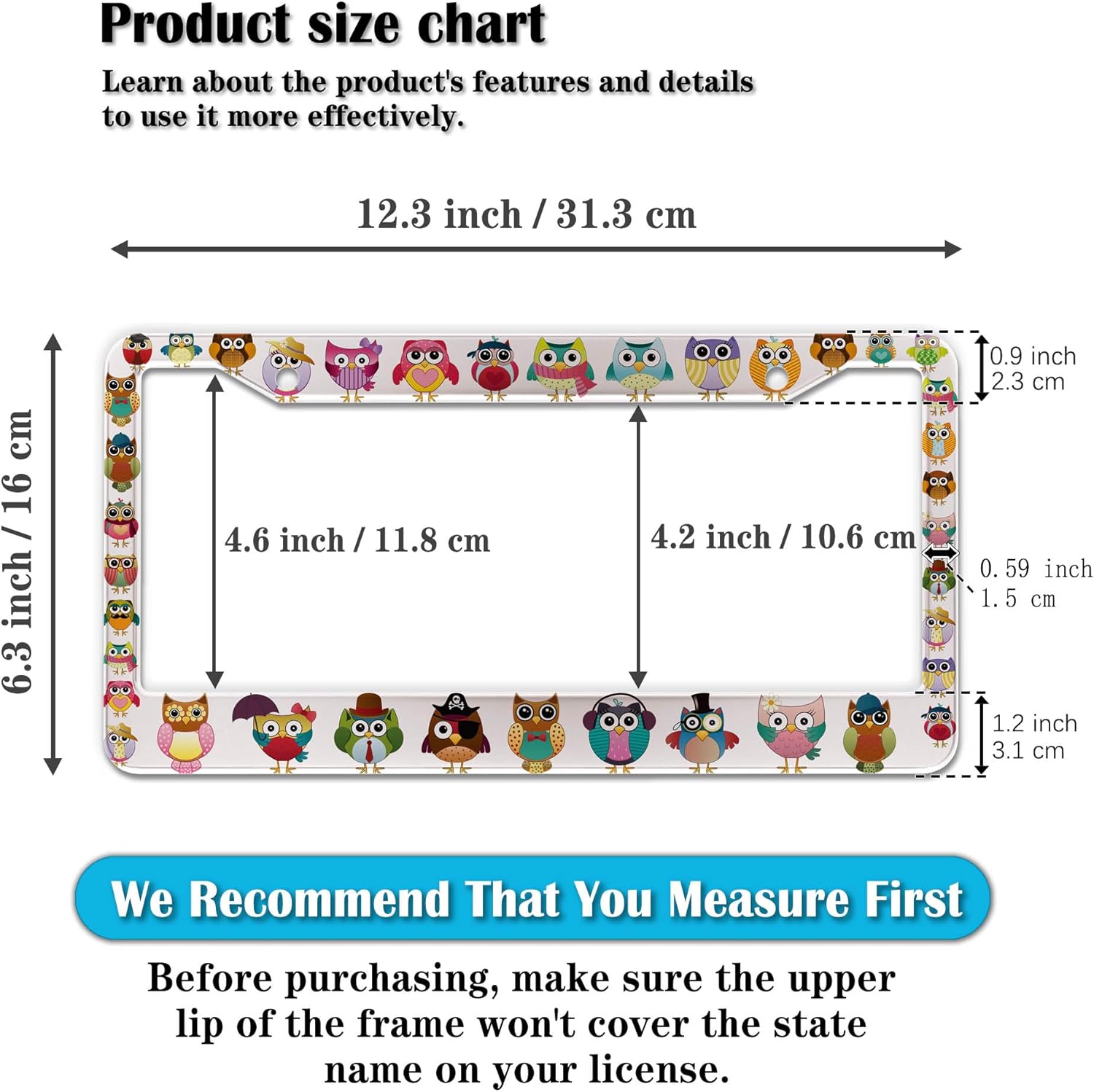 License Plate Frames for Women Multicolor License Plate Frame for Men Cute Owl Universal Aluminum Car Accessory 2 Pack with Screw Covers Set