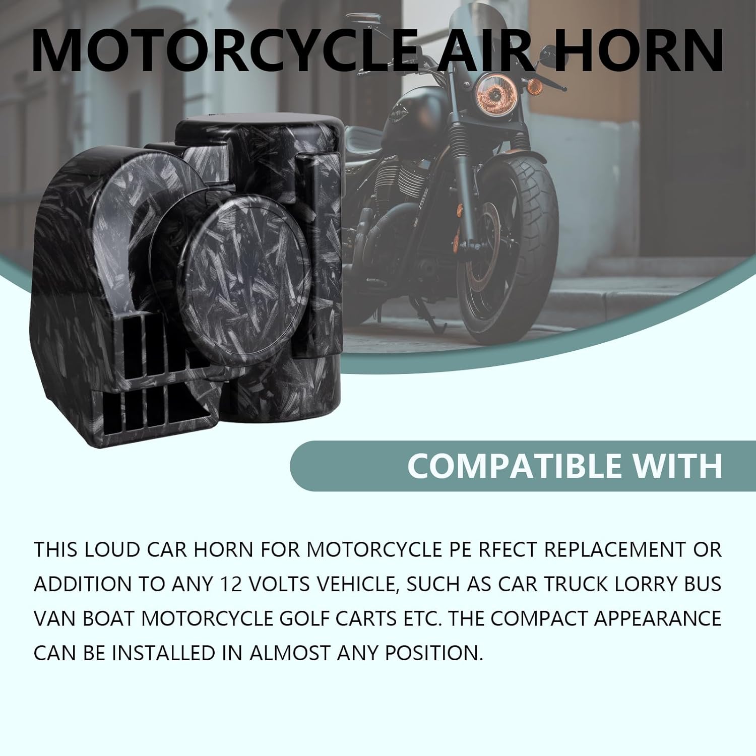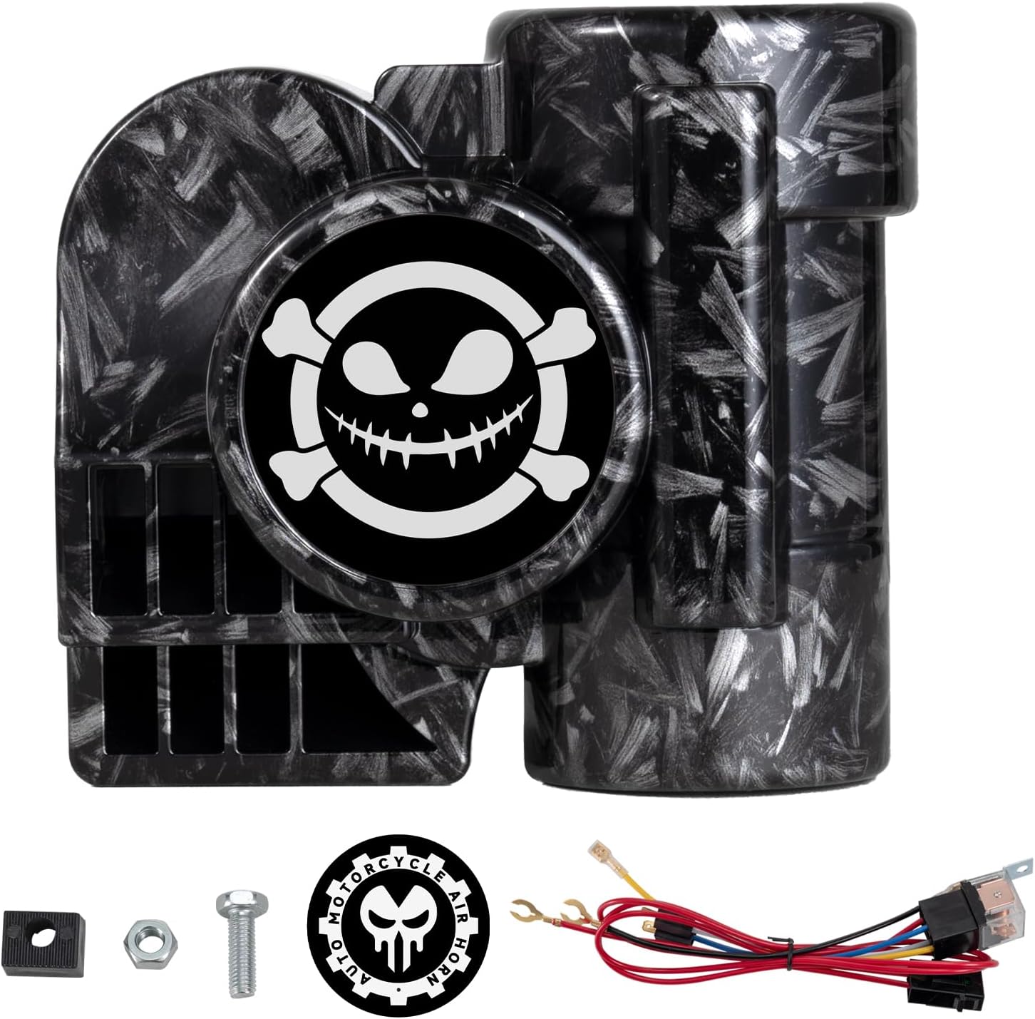 Loud Car Horn with Relay,150dB Train Horn for Motorcycle,12V Air Horns for Car,Black & Gray Personalized Pattern,Dark Style Motorcycle Waterproof Snail Horns