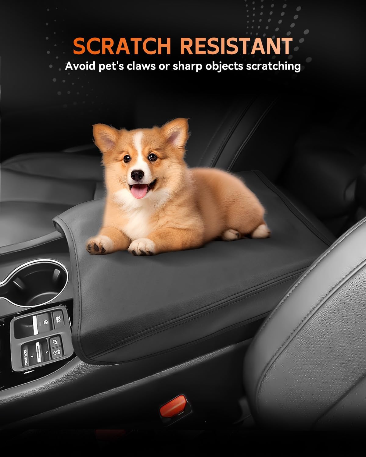 - [Excellent Scratch Resistance] The car Armrest Cover is made of high quality PU microfiber leather, thick enough to keep out pet paws, dust and sticky fingers. The surface is waterproof, wear-resistant and durable, breathable, light weight and easy to wipe clean of dirt.