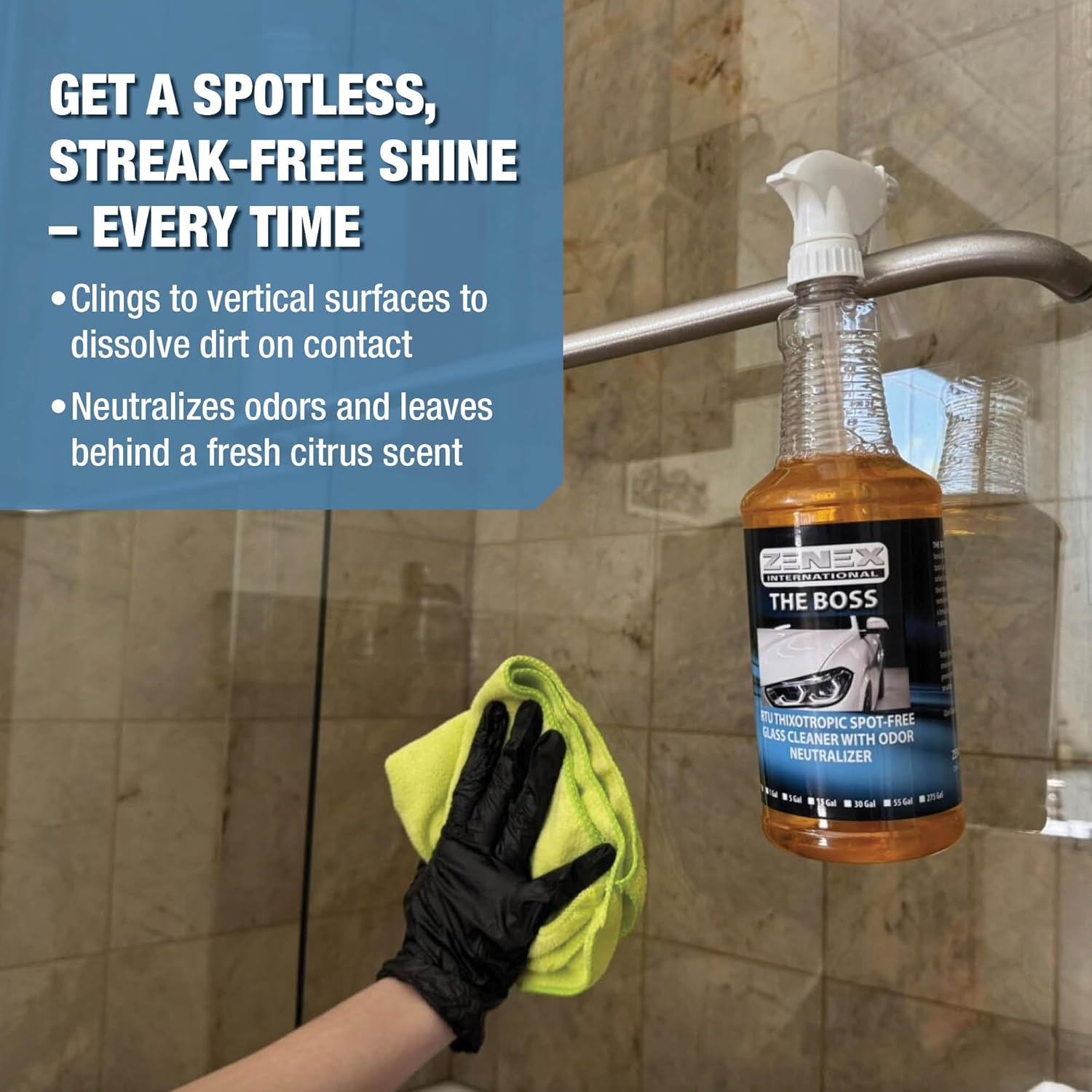 - MADE IN THE USA WITH QUALITY YOU CAN TRUST: Proudly manufactured in the United States, Zenex The Boss Glass Cleaner represents the highest standards of quality and performance. Supporting local industry while delivering exceptional results, this professional-grade glass cleaner is a must-have for anyone seeking a flawless, streak-free shine on glass surfaces.