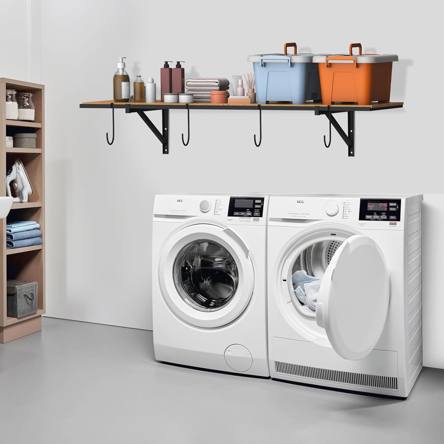 - 🔧Enhanced with Hooks: Each shelf in the PEKGRIL Garage Wall Shelving Set is equipped with 4 versatile hooks, engineered to optimize your storage capacity. This added feature not only multiplies your storage options but also aids in creating a more organized and accessible storage environment.