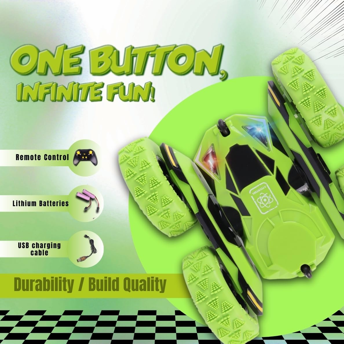 RC Stunt Car, Remote Control Double-Sided Driving 360° Flips & Rotations, Rechargeable Lithium Batteries, Color-Changing Lights, for Kids Ages 6-12, Green