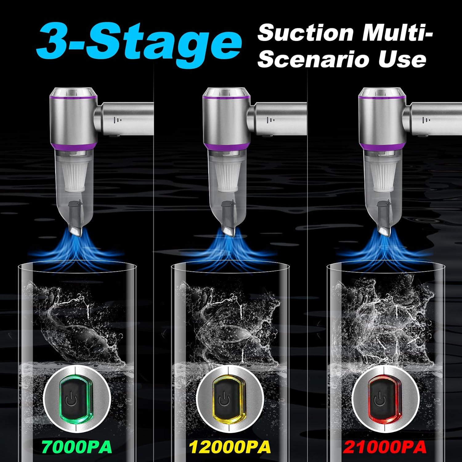 Car Vacuum Portable Cordless,21000PA High Power,Mini Vacuum Cleaner,4-in-1 With Brushless Motor,Air Blower,Handheld Vacuum Cordless,3 Gear Adjustment,Car Vacuum Cleaner Suitable for Cars,Home,Outdoors