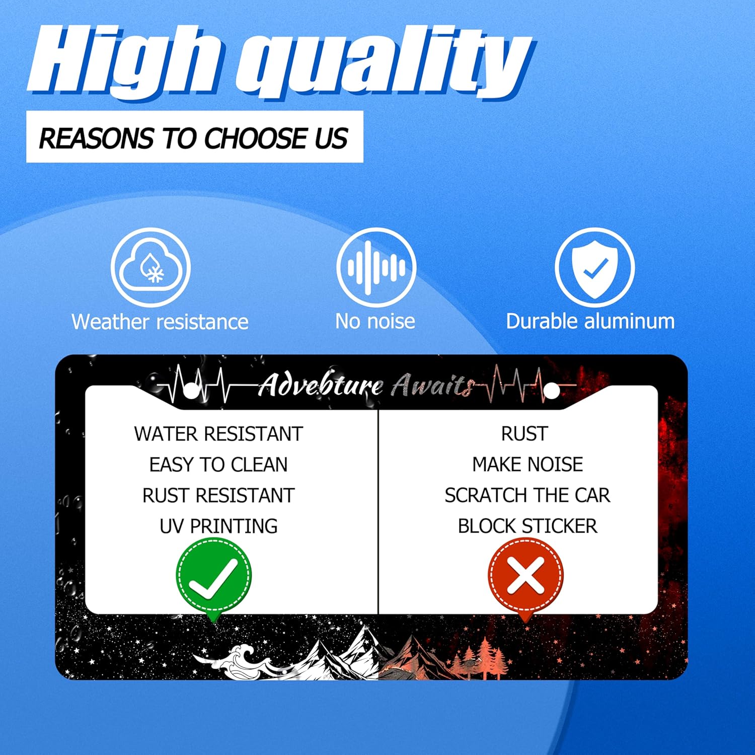 - Design:Use Advanced digital printing Protects license plate frames from Whether it's a car wash, heavy rain or hot weather, it still looks brand new,Let your car still be unique and stylish while driving on the road