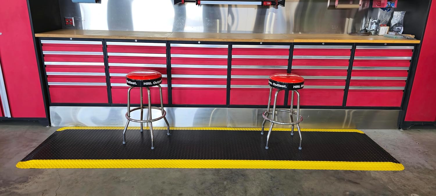 Rhino Mats, American Classic Diamond Anti-Fatigue Mats, Industrial Ergonomic Comfort Standing Mat for Work, Home, Garage, Office, Kitchen or Anywhere (Black/Yellow 9/16" Thick, 2 FT. x 3 FT.)
