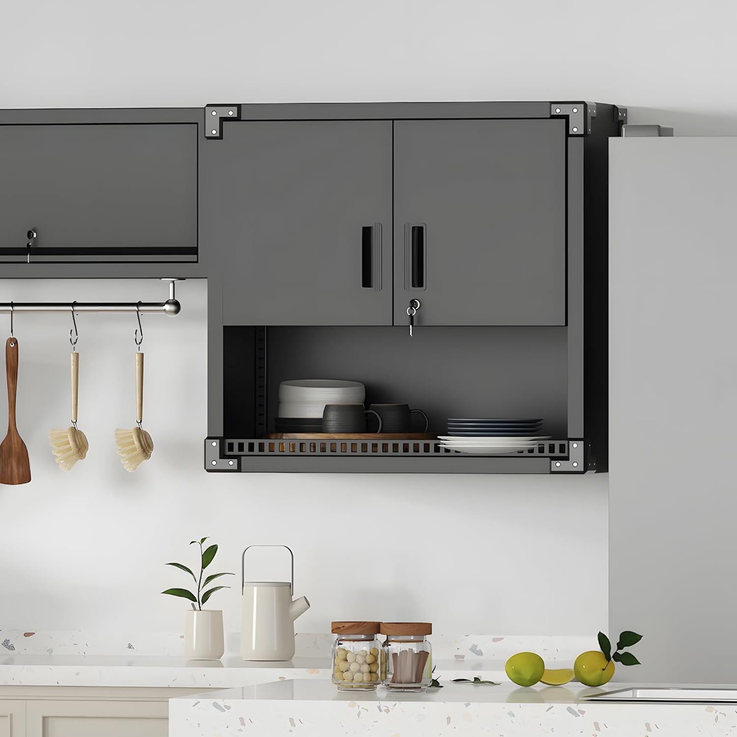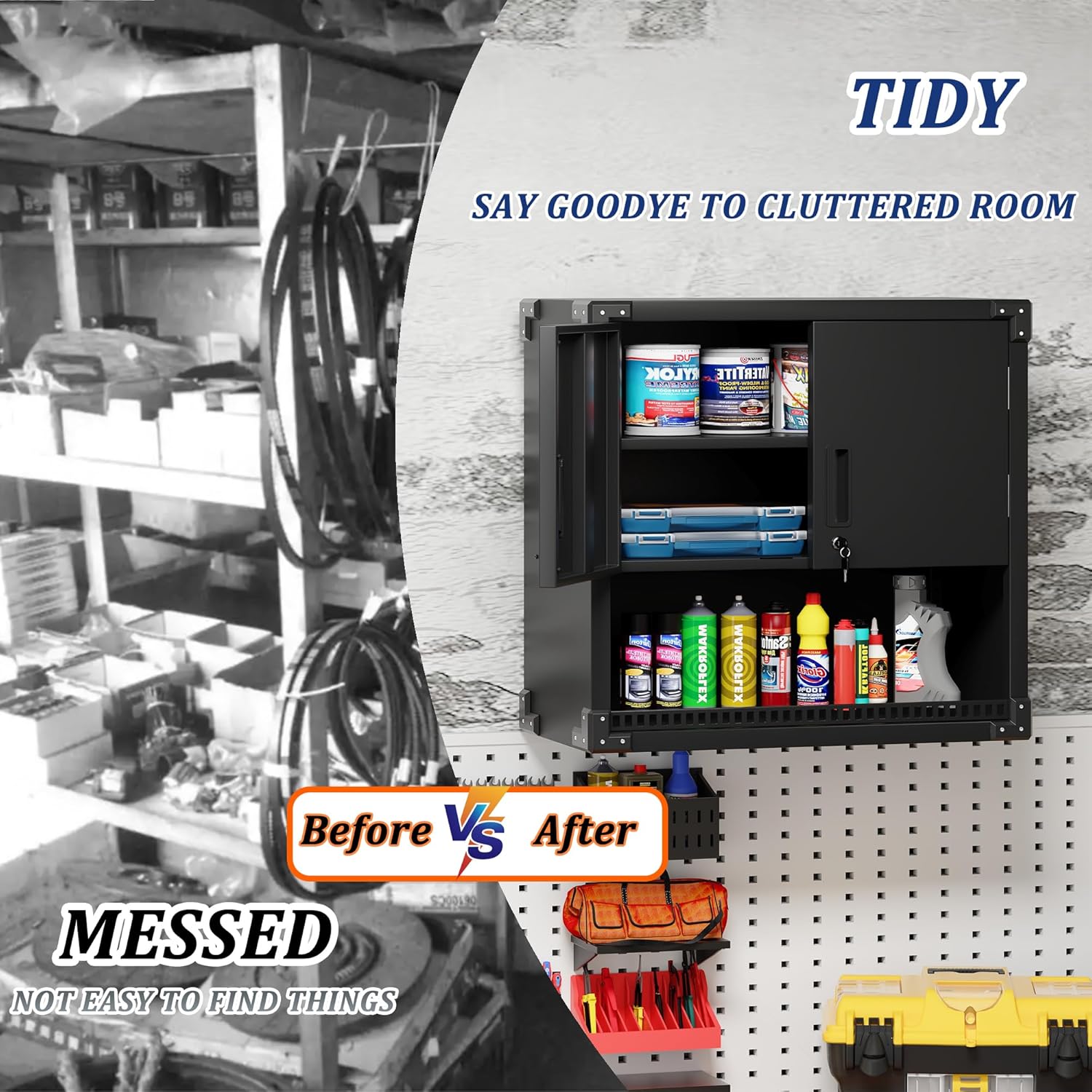 - Multi-scene Use: Wall cabinet is suitable for home, garage, warehouse, kitchen, tool room, especially for garage and tool room, for you to place tools and daily necessities to provide sufficient safe storage space, keep the room clean.