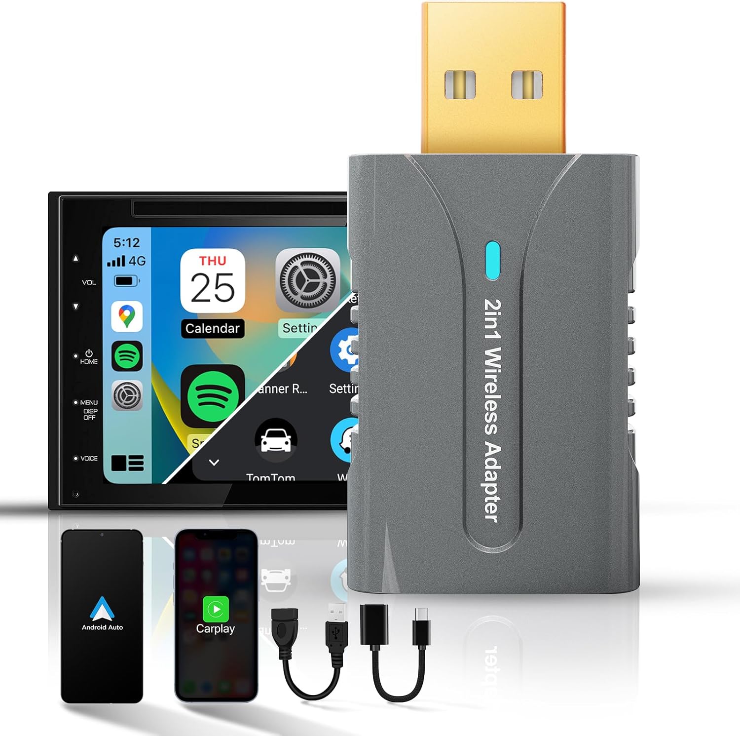 - 2-in-1 Carplay and Android Auto Wireless Adapter: Easily transform wired Android Auto / Carplay into a wireless experience. No additional drivers or apps required. Connect your Bluetooth and WiFi and the wireless adapter will automatically connect to your phone when you start your car, even if your phone is in your pocket or on a call
