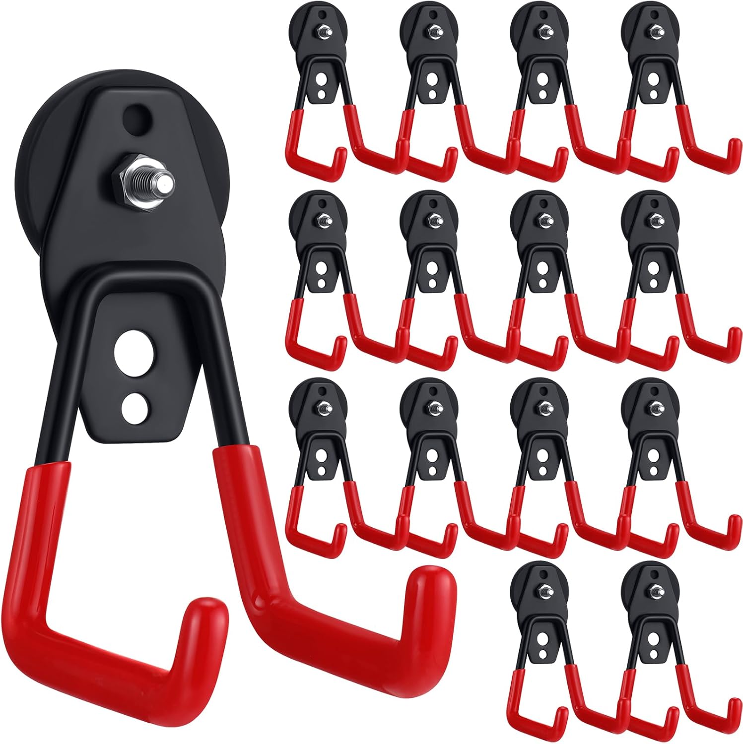 Landhoow Large Magnetic Hooks Heavy Duty Garage Magnet Hooks Strong Storage Utility Magnetic Hangers with Anti Slip Rubber Coating for Indoor and Outdoor Hanging(Red,14 Pcs)