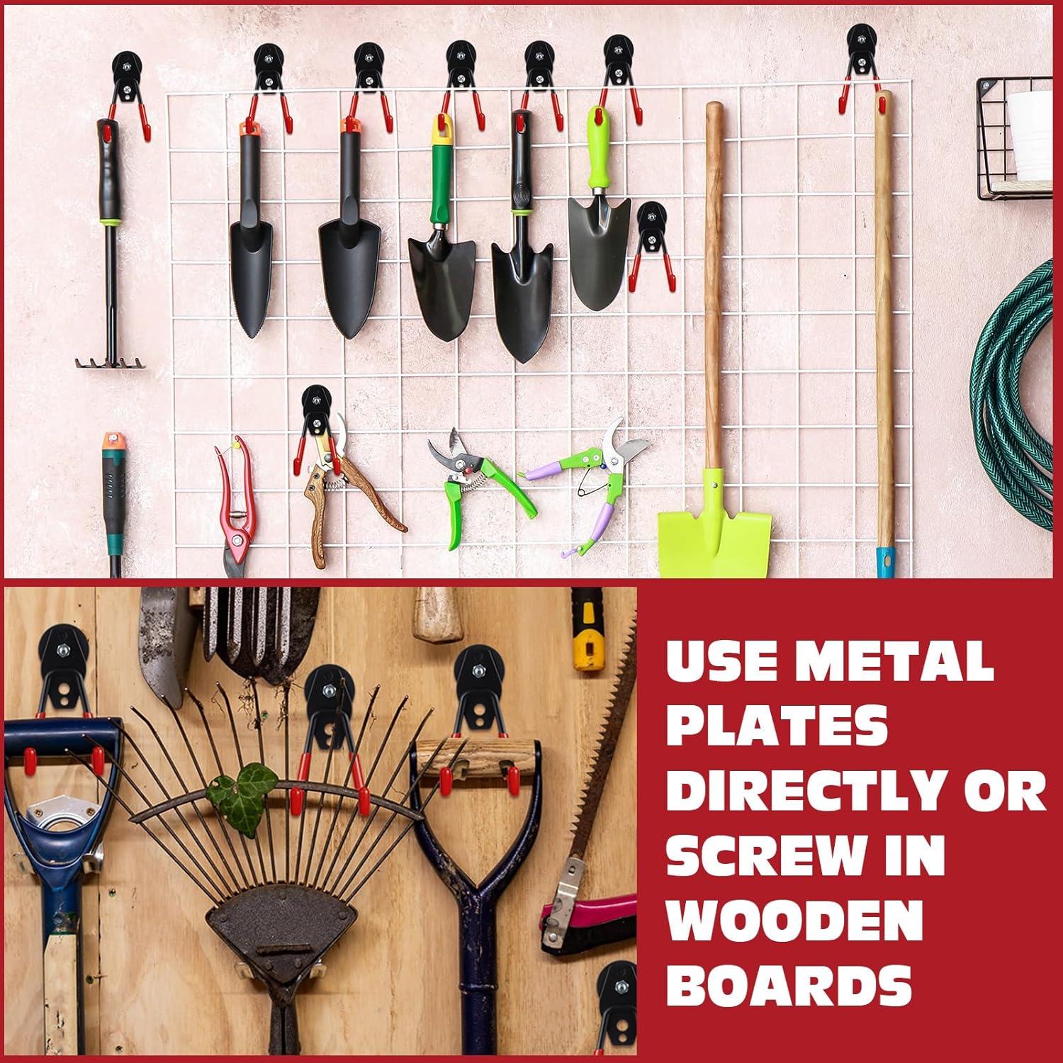 - Wide Range of Usages: compared with the single hook, our garden tool hooks have 2 holes, which can easily support the weight and can hang most items; Applicable to scenes such as kitchens, garages, warehouses, offices, etc. which can accommodate various tools and equipment, such as hoses, skates, gym bags, shovel, rake, broom, mop and other garden tools