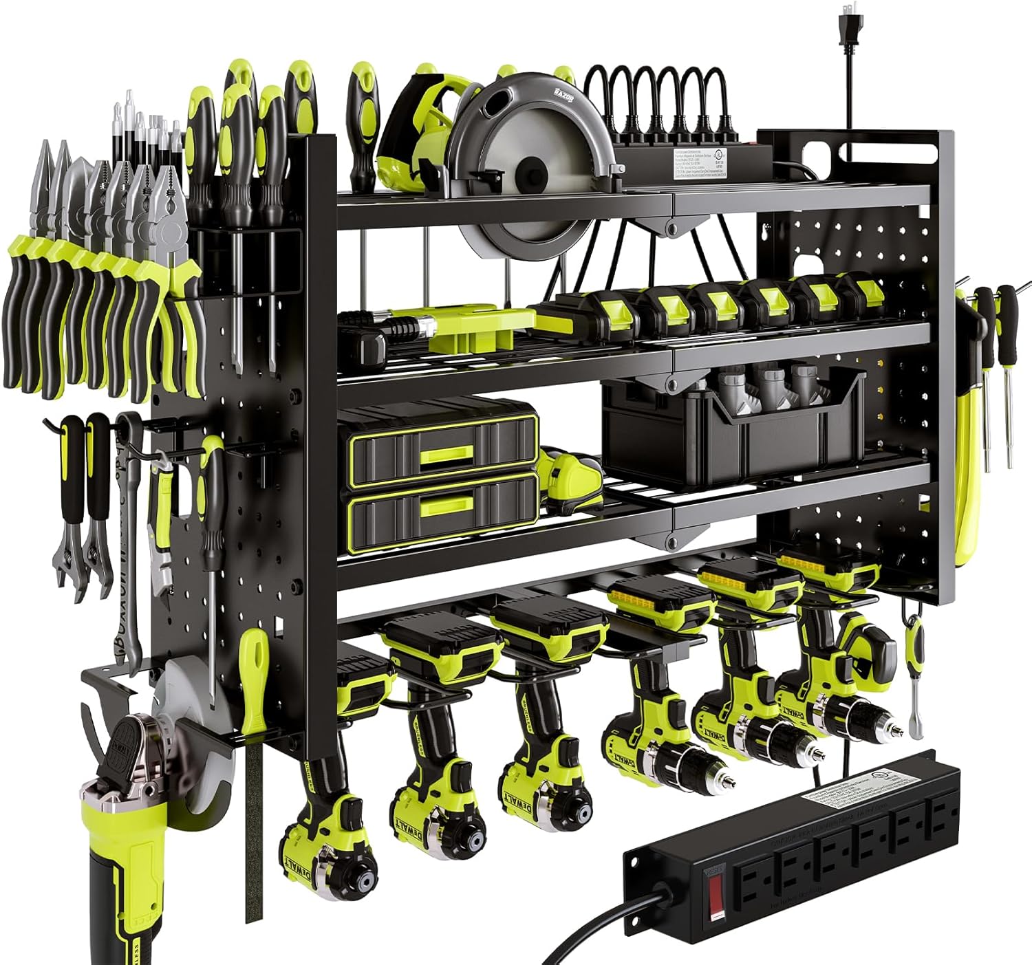 - Enhanced Storage Capacity:Perfect for garages and workshops, this 4-tier organizer neatly stores your tools and holds up to 6 drills on the bottom rack. Optimize your workspace for maximum efficiency