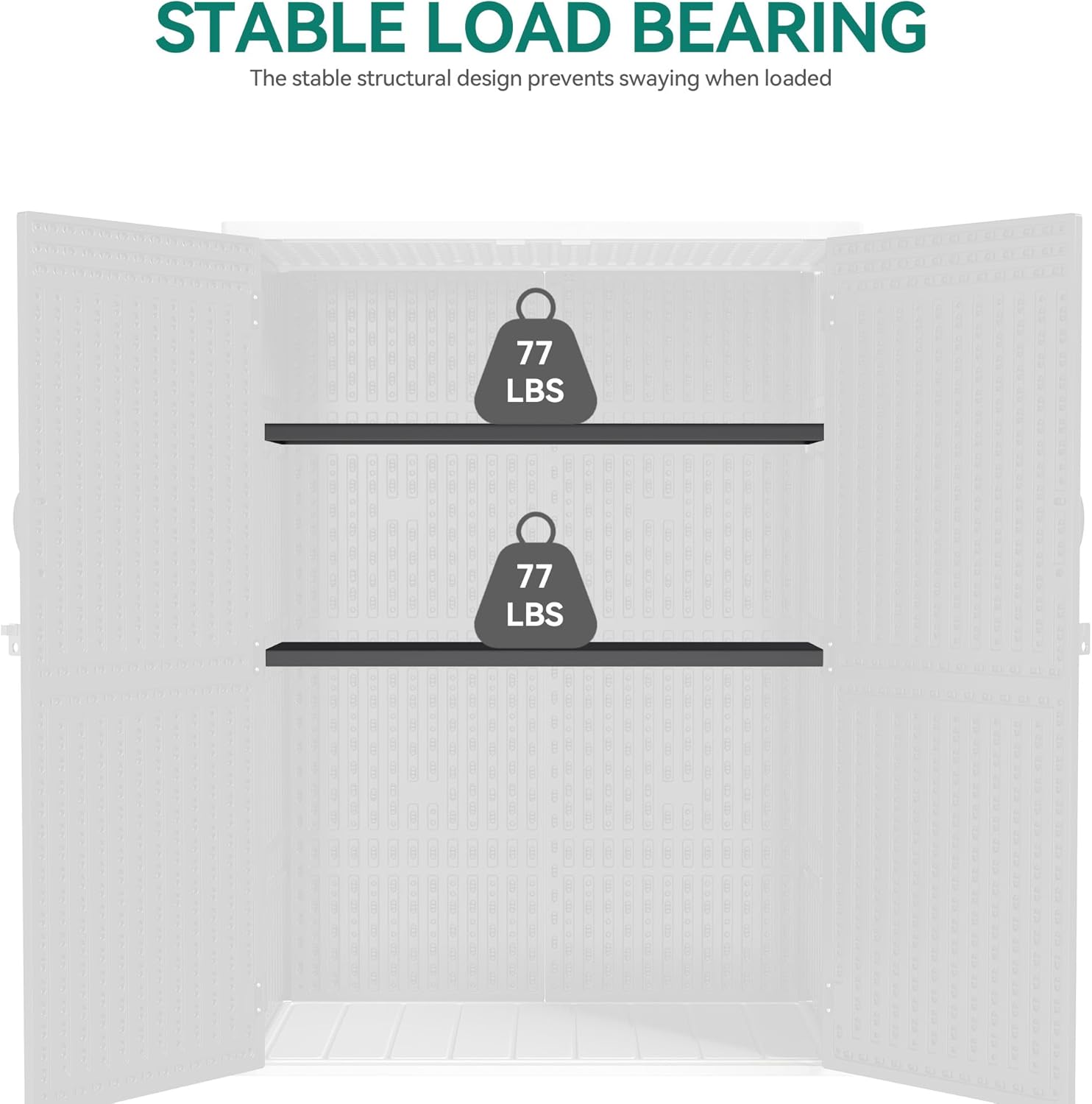 - Flexible Storage: Supporting a substantial 77 lbs, this storage shed shelf accommodates gardening tools and camping gear effortlessly, promoting a tidy outdoor environment and streamlined storage solutions