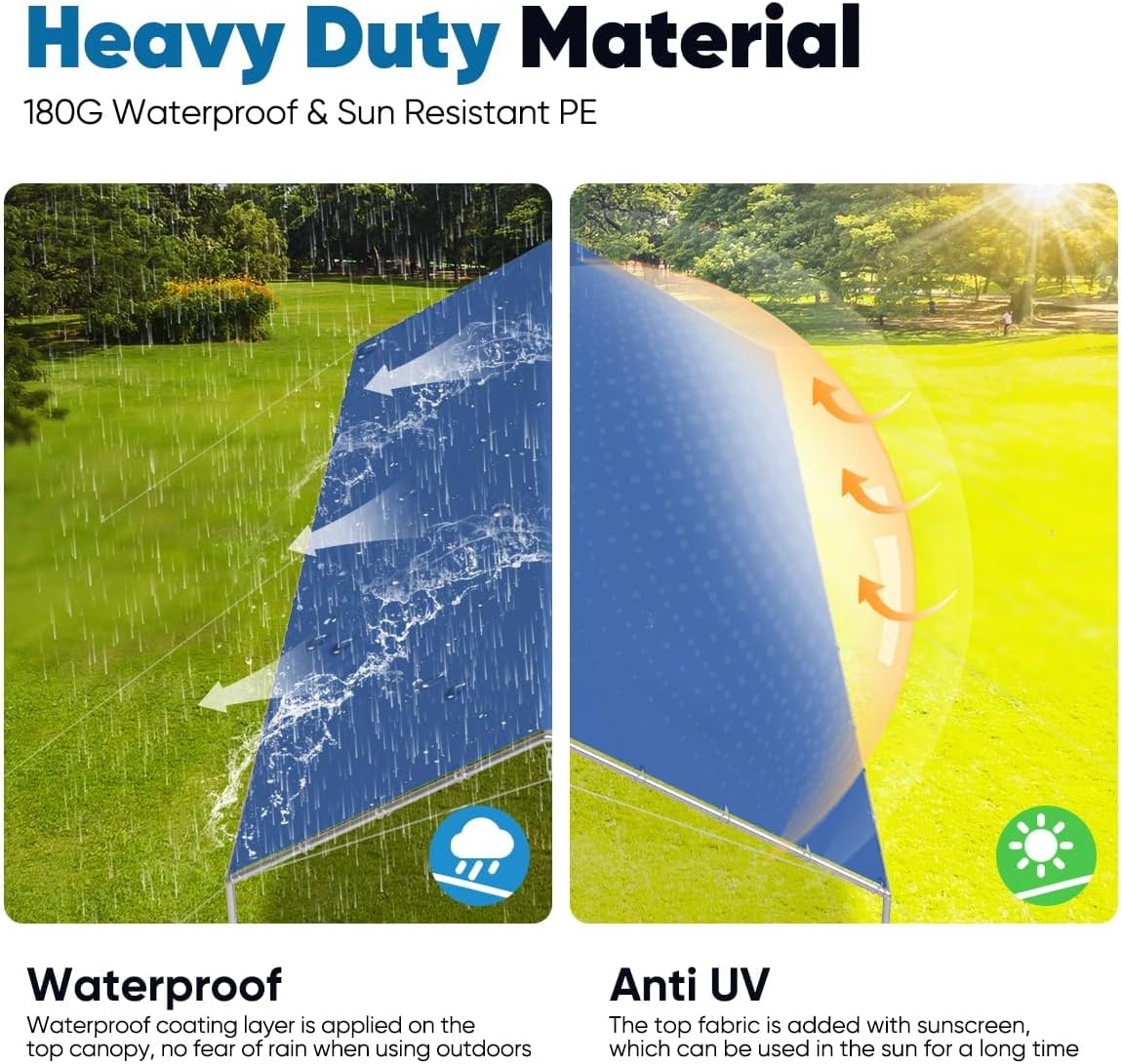 - 【Extra-thick Polyethylene Fabric】:Reinforced PE material is Tear-proof, Waterproof and Anti-UV. Industrial grade Cover Fabric for long lasting durability and protection guaranteed could extended service life of the carport canopy.