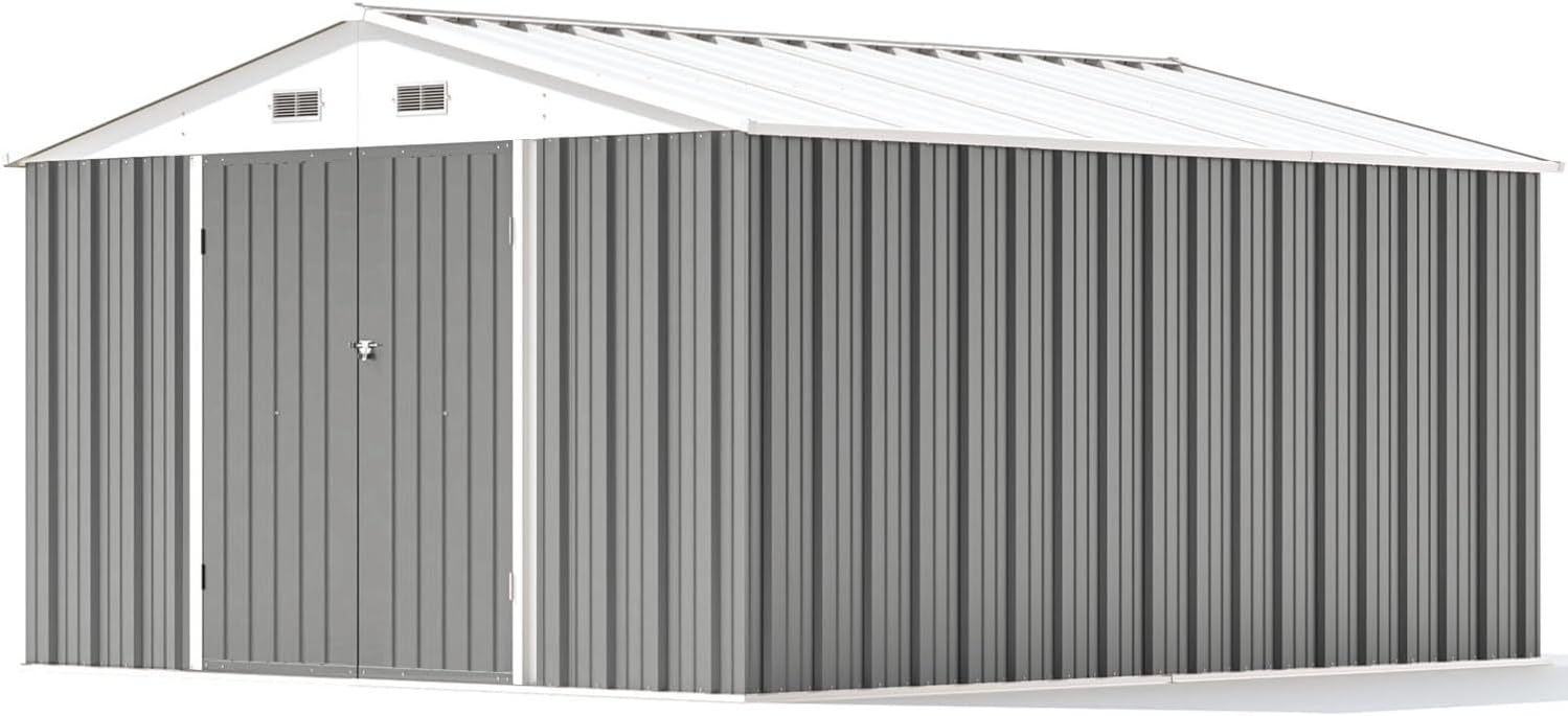 Patiowell 10 x 12 FT Metal Storage Shed for Outdoor, Steel Yard Shed with Design of Lockable Doors, Utility and Tool Storage for Garden, Backyard, Patio, Outside use, Gray