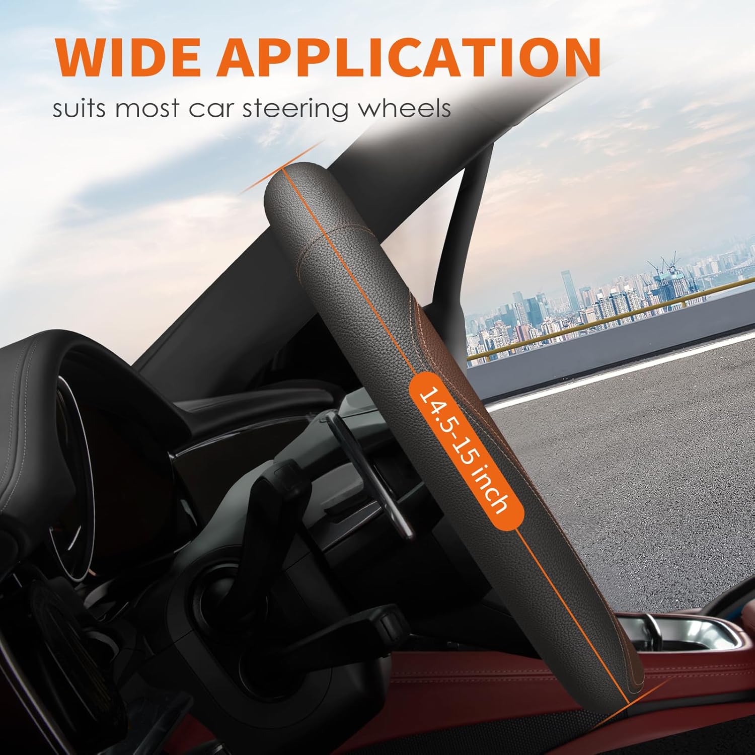 - WIDE APPLICATION: Featuring a universal size, HOTOR leather car steering wheel cover suits car steering wheel with a diameter of 14.5 to 15 inch(about 37 to 38cm). It's applicable to most cars like sedans, SUVs, and RVs.