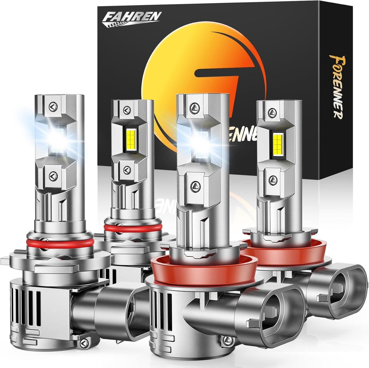 forenner 9005 H11 Light Bulbs Combo 100000LM 1000% Brighter, 2025 Upgraded HB3 H9 H8 Combo Light for Powersports, Real 1:1 Mini Size Plug N Play, Pack of 4