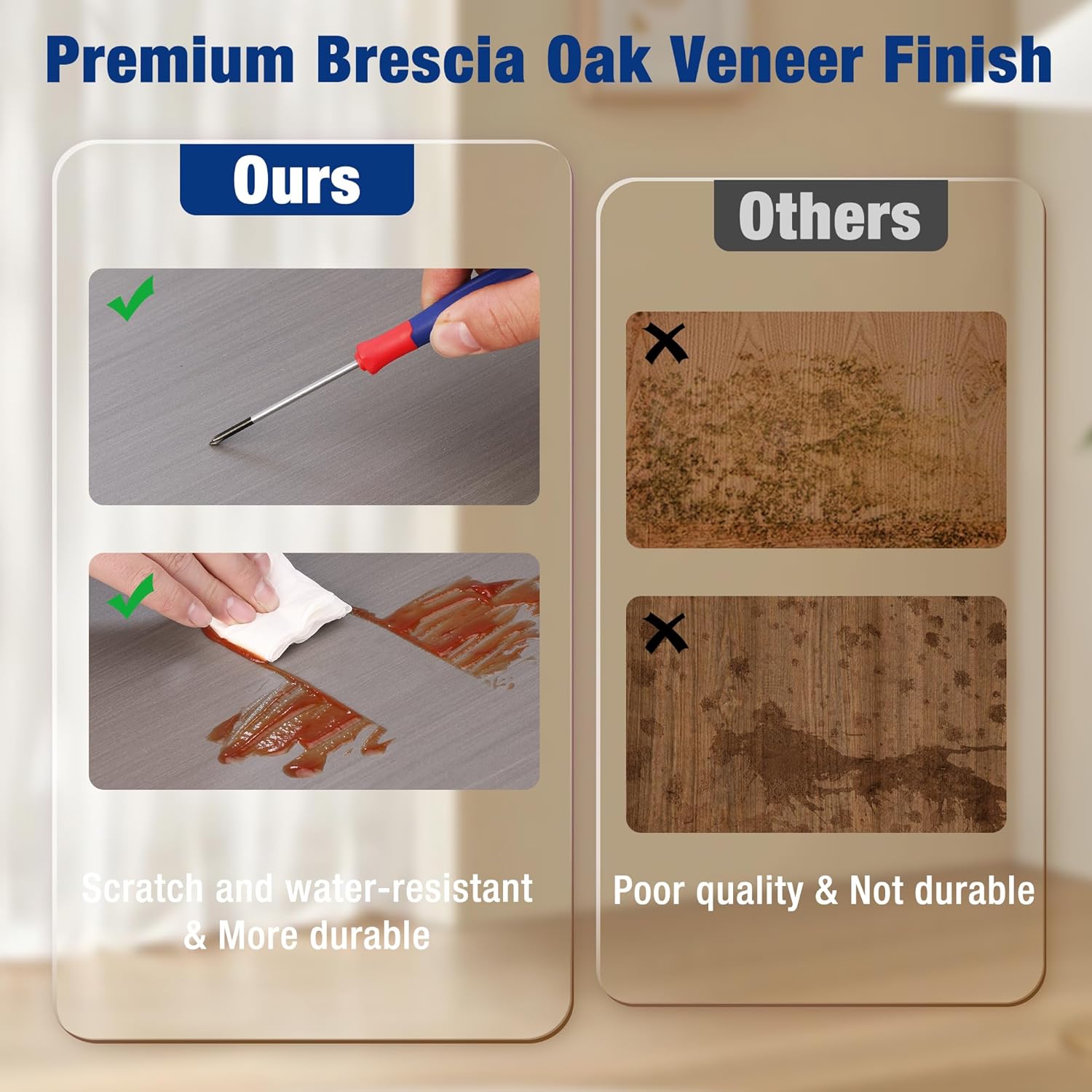 - 【Scratch-Resistant Surface】The premium Brescia oak veneer offers a stylish, scratch-resistant, and waterproof finish. This storage shelves combines elegance and durability, ensuring long-lasting use for your garage organization.
