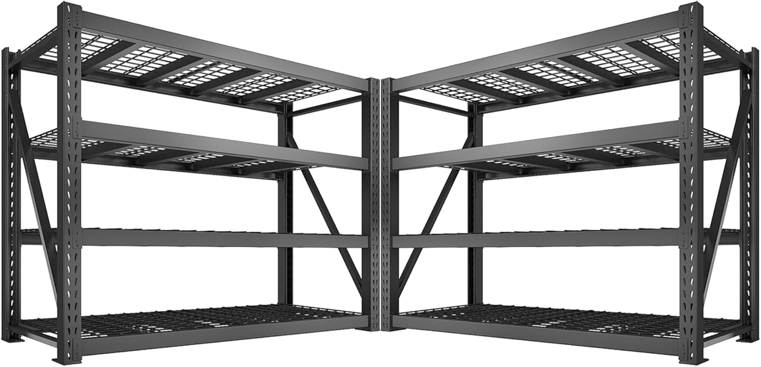 Bepatio 8000LBS Garage Shelving Heavy Duty, 77" Ultra Wide Storage Shelves 4 Tier Metal Shelving for Storage, Adjustable Utility Shelves For Garage, Basement, Warehouse, Black 77" W*24" D*72”H, 2 Pack