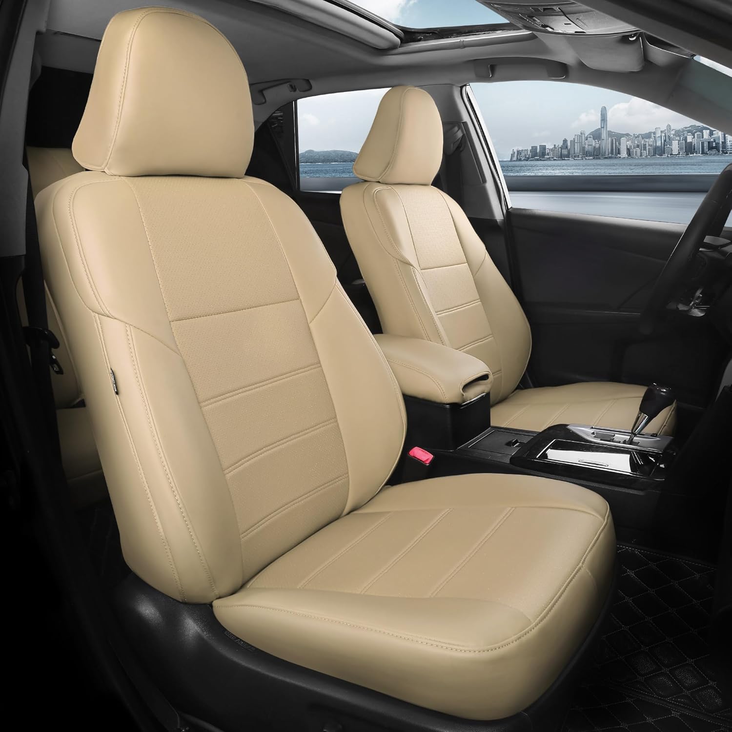 for Toyota Camry Seat Covers SE XSE SE Sport 2012 2013 2014 2015 2016 2017 - Custom Fit Car Seat Covers Full Set, Waterproof Breathable Leather Seat Covers for Cars, Beige Not for Hybrid