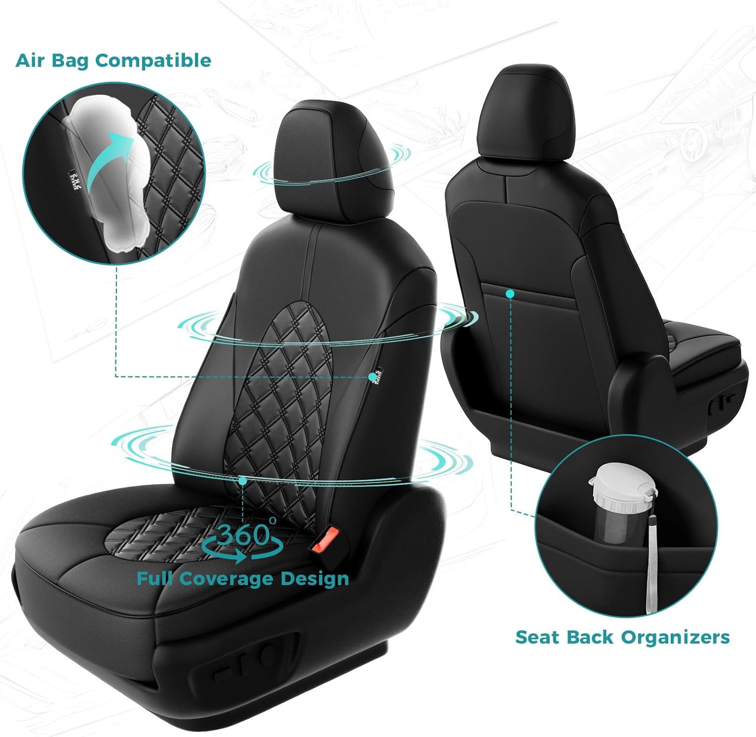 - 【Maintain Existing Functionality】: Tailored to fit snugly all details of car seat covers for Toyota camry and ensure the full function, not affecting at all the use of airbag, armrests, safety belt, child seats and seat adjustments. full wrap front car seat covers come with seat back organizer for improved user convenience.