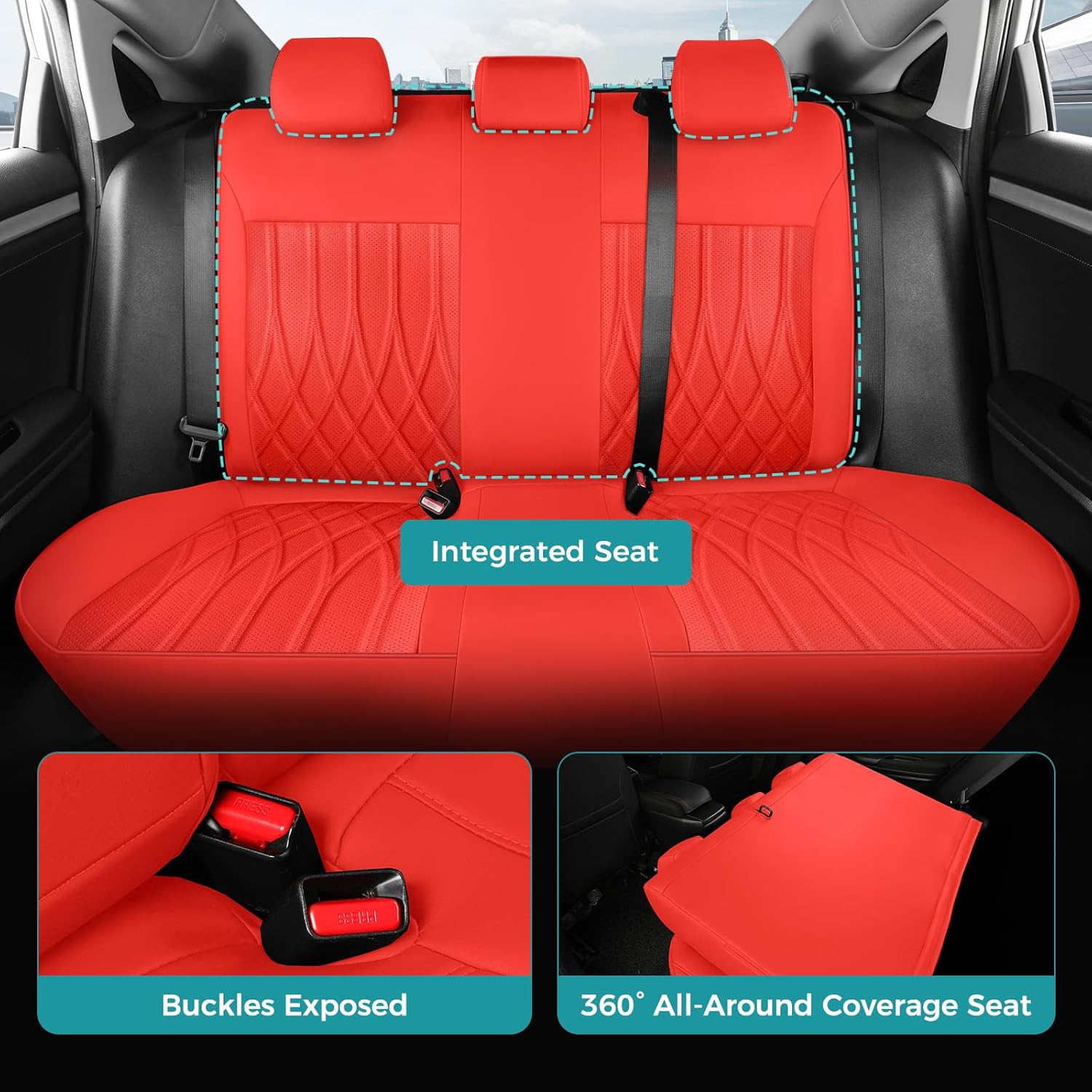 Seat Covers for Honda Civic Sedan 4DR Sedan LX 2022 2023 2024 2025.Faux Leather Car Seats Cover Full Set,(Rear Row Solid Folding Backrest)-RED