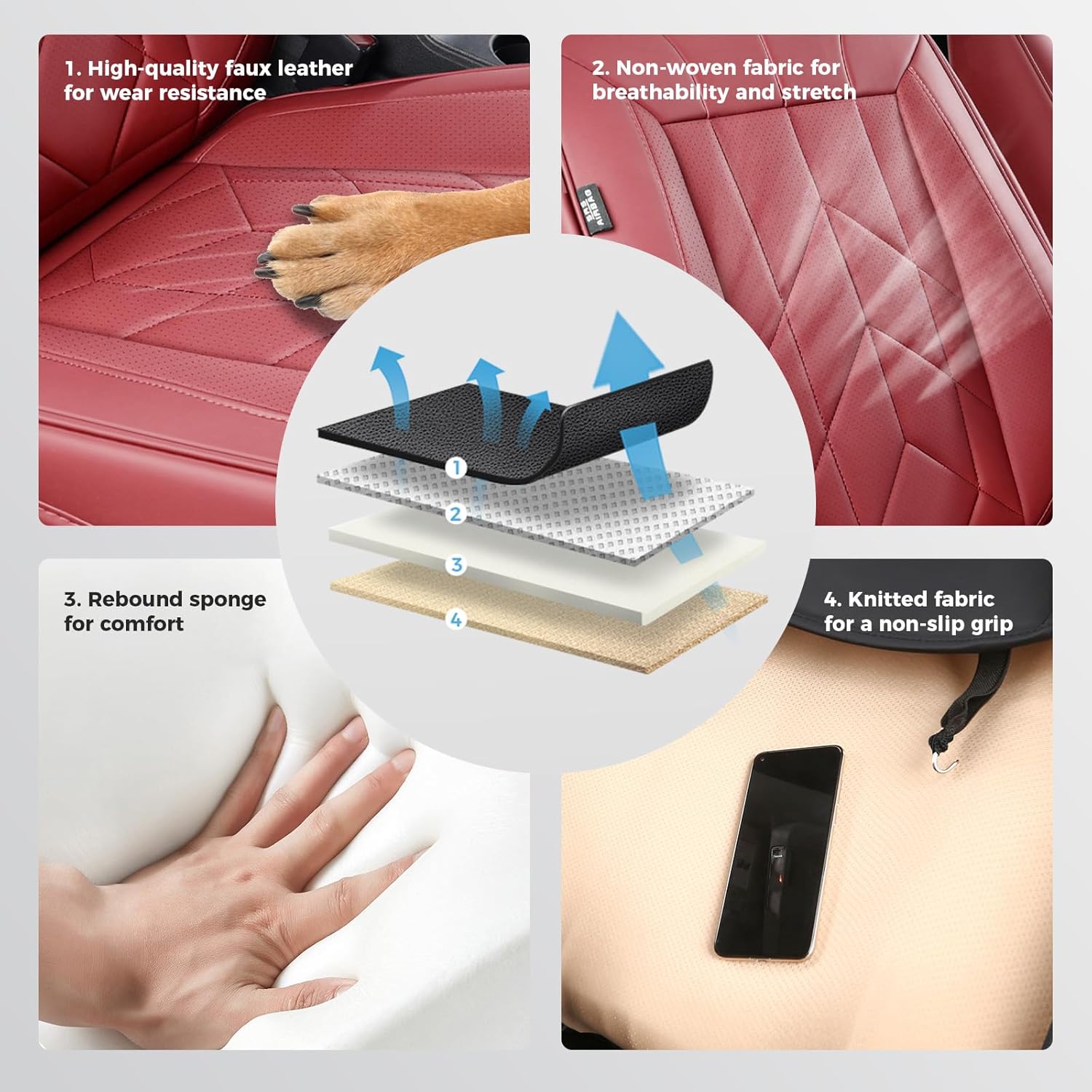 - Premium Car Seat Protector: This car seat cover set features a four-layer structure for superior waterproof protection, shielding your seats from spills, pet scratches, and harmful UV rays. Easy to clean with a damp cloth, keeping your waterproof car seat cover looking new.