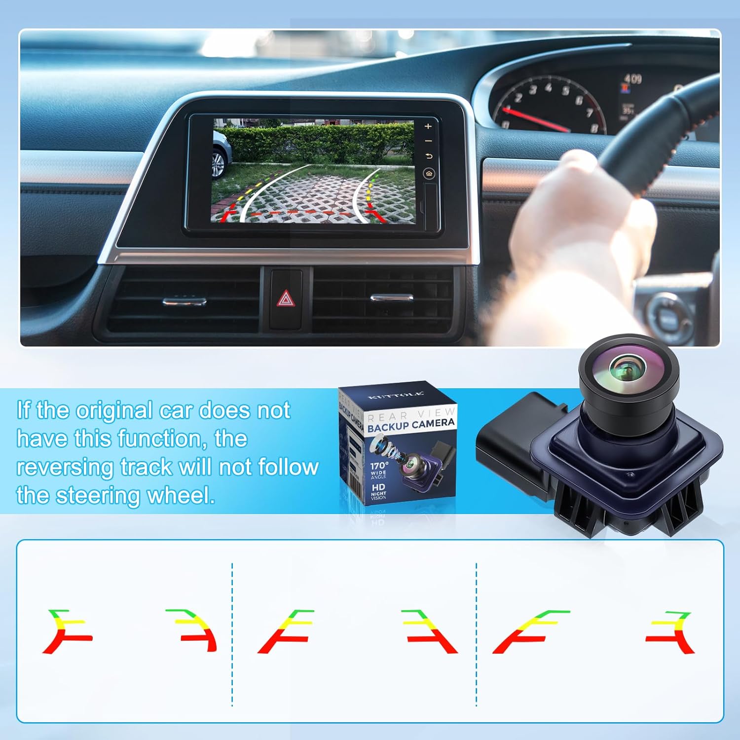 - Enhanced Safety: The Parking Assist Camera displays the track guide lines, which automatically change according to the movement of the car(Depends on whether the original car supports this function). If you have any problem with our Rear View Backup Parking Camera, please feel free to contact us, we will give you a satisfactory solution at the first time.