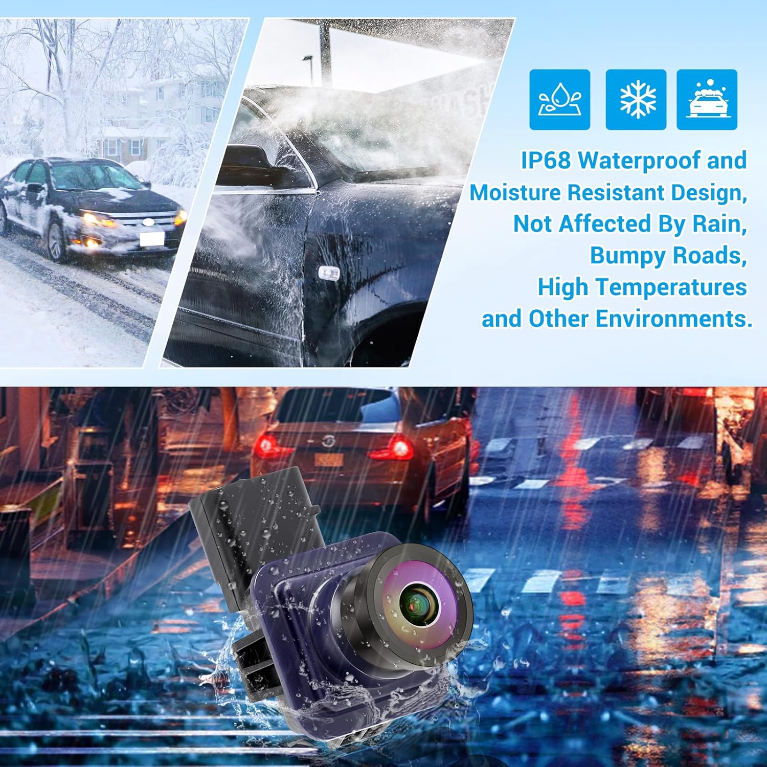 - HD Night Vision: Rear Reversing Camera adopts glass lens, stable performance, clear imaging when reversing, super night vision, not only during the day, but also performs well at night, preventing reversing blind spots and underground garage accidents caused by dim light.IP68 waterproof effect can be clearly displayed even in rain, snow and other bad weather.