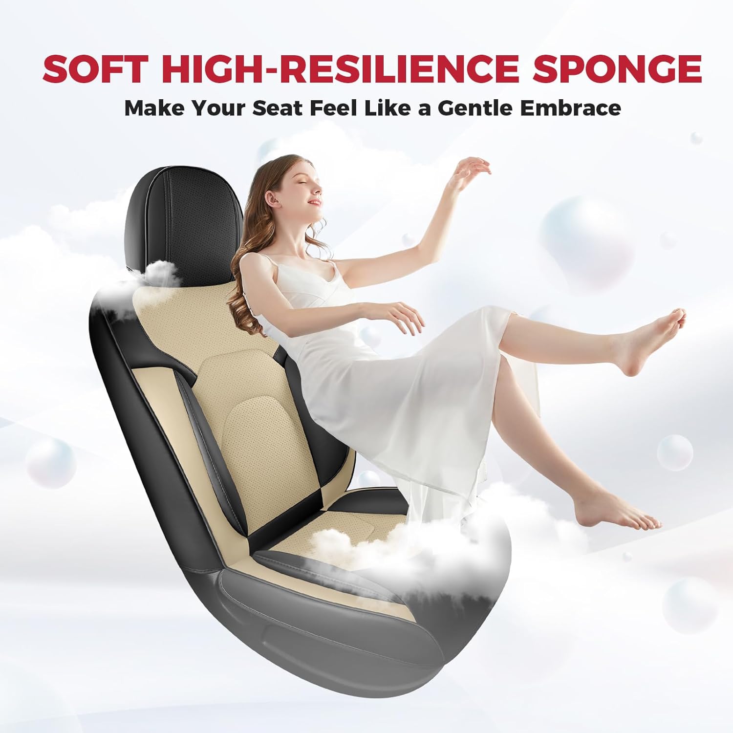 - [Comfortable Experience] Crafted with high-resilience sponge, these car seat covers are as soft as a hug, ensuring long drives without fatigue and maintaining their shape even after extended use