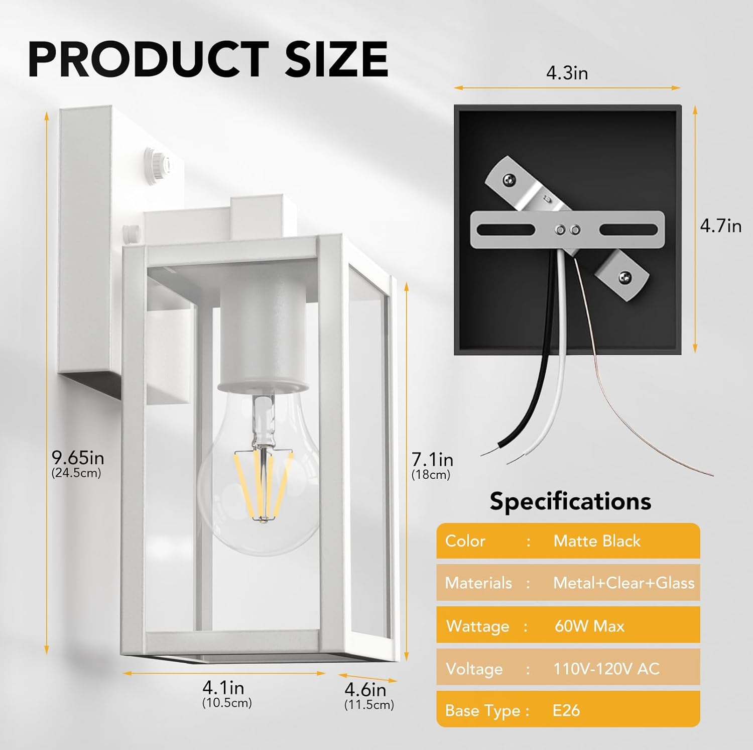 - 🟡TOP-NOTCH PHOTOCELL SENSOR TECHNOLOGY: Take the upgraded photocell sensor, our outdoor wall light fixtures can sensitively detect the brightness of the surroundings to adjust the switch. Auto turn on at night time when ambient brightness less than 20 LUX. Auto turn off at daytime when brightness over 100 LUX. You don't need to turn it on/off manually, free your hands, and save your bills on electricity