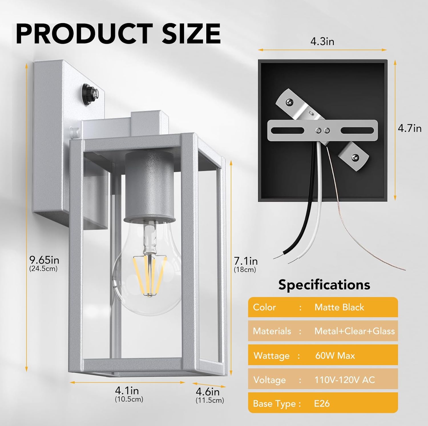 - 🟡E26 BULB BASE: Our wall lantern is compatible with all E26 base bulbs(Max 60W). Including LED, CFL, incandescent, halogen, etc...You can choose different bulbs by your preference to create different lighting atmospheres for your family. (Note: Bulb not included)