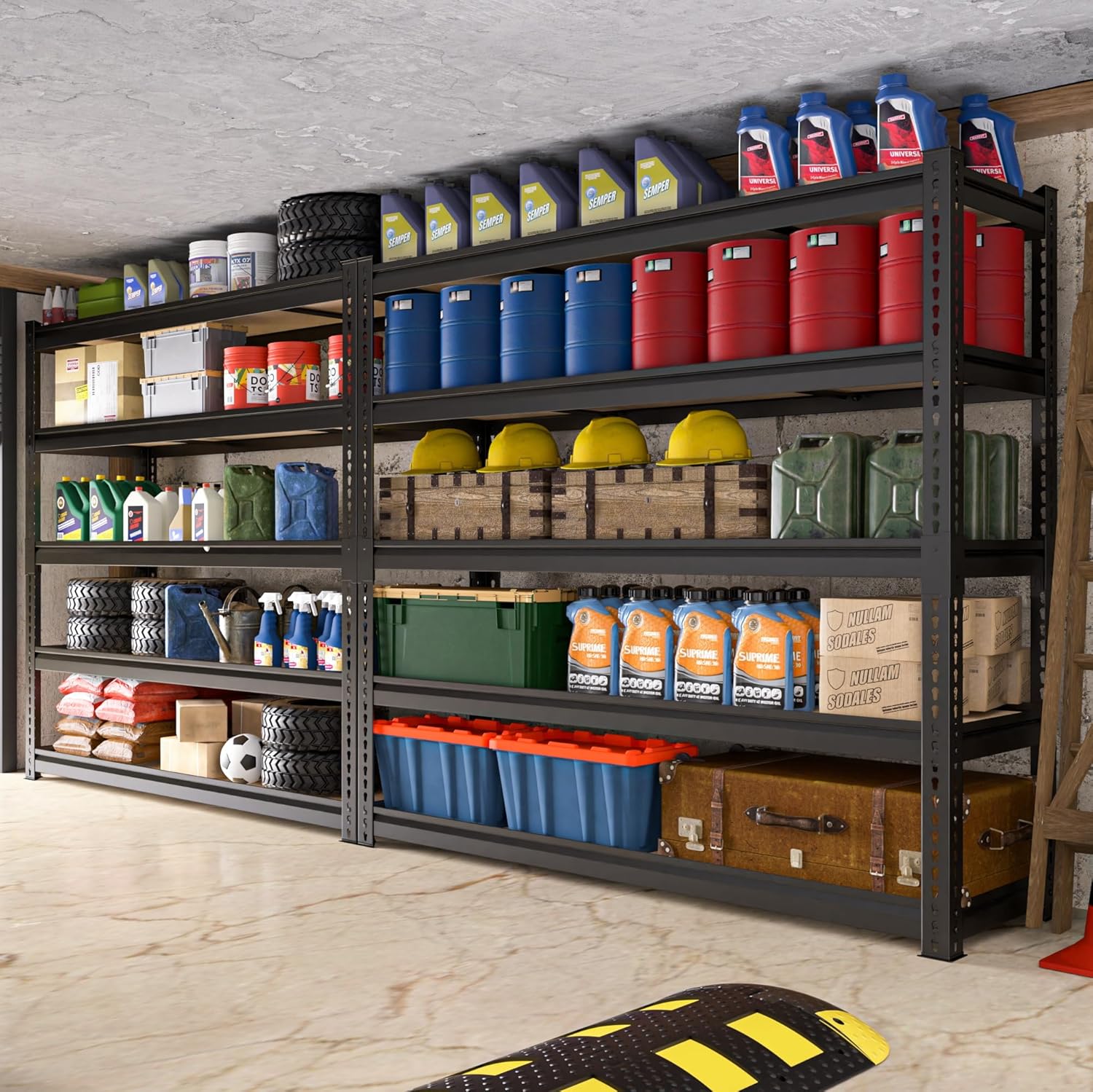 - Adjustable Shelves: These garage storage shelves are made of high-quality thick MDF boards and thicken metal steel frame with black powder coating. It is customizable with 1.58" increments to fit short and tall items.