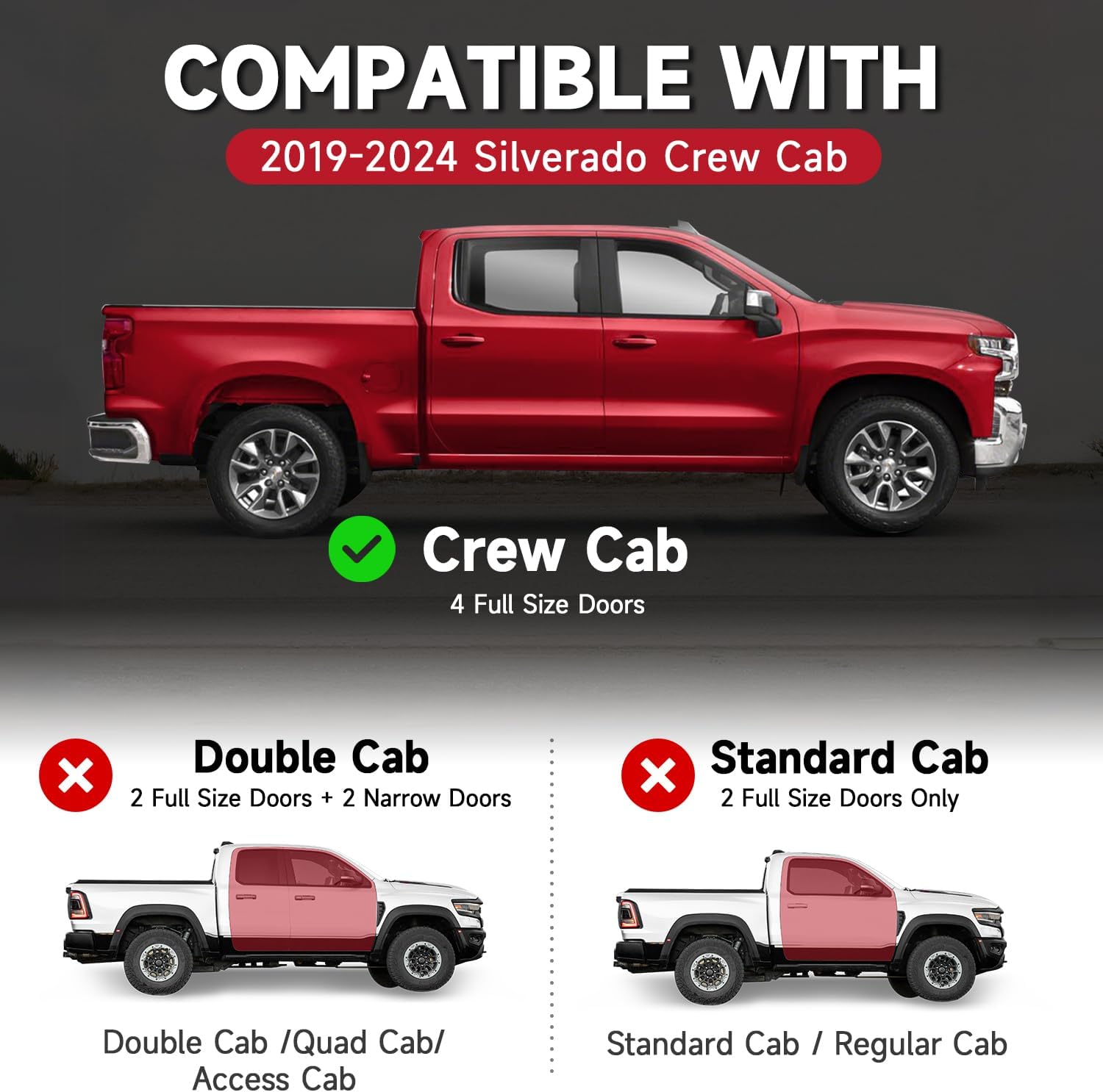 - 【Custom Design】Our running boards are specifically engineered for 2019-2024 Silverado Crew Cab, perfectly aligning with the vehicle’s factory mounting points for easy, no-drill installation.