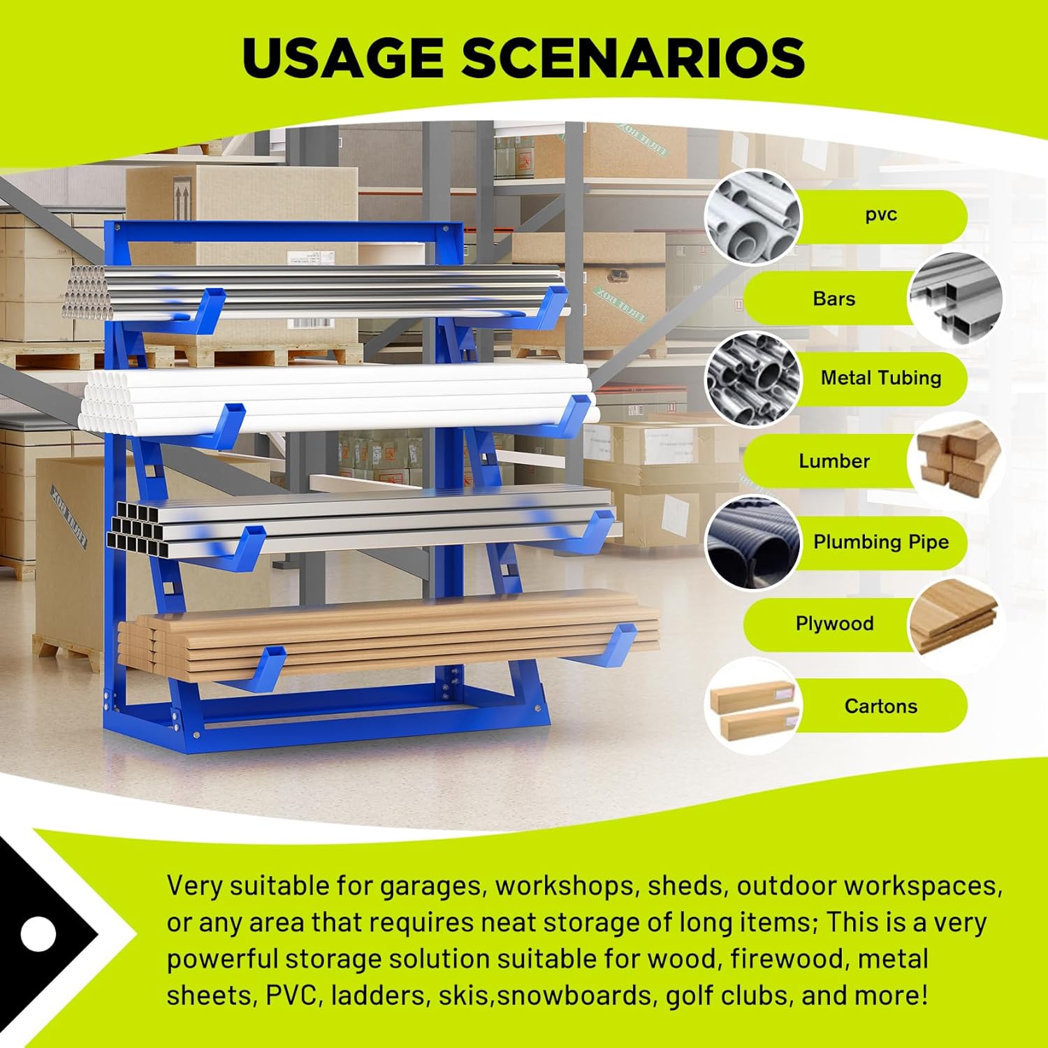 - Wide Application: Great for garage, workshop, shed, outdoor workspace or any area where long items need to be stored neatly; This is a very strong storage solution for lumber, firewood, sheet metal, PVC, ladders, skis, snowboards, golf clubs and more!