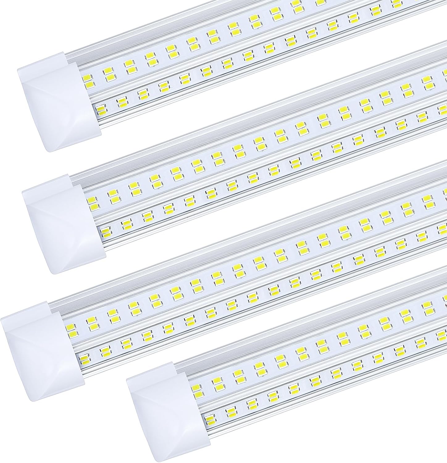 4 Pack,Led Shop Lights, 8FT Led Shop Light,144W 6000K 19500LM Clear White,Led Shop Light 8FT 110V Linkable Integrated 4 Row V-Shape for Shop Garage,Warehouse