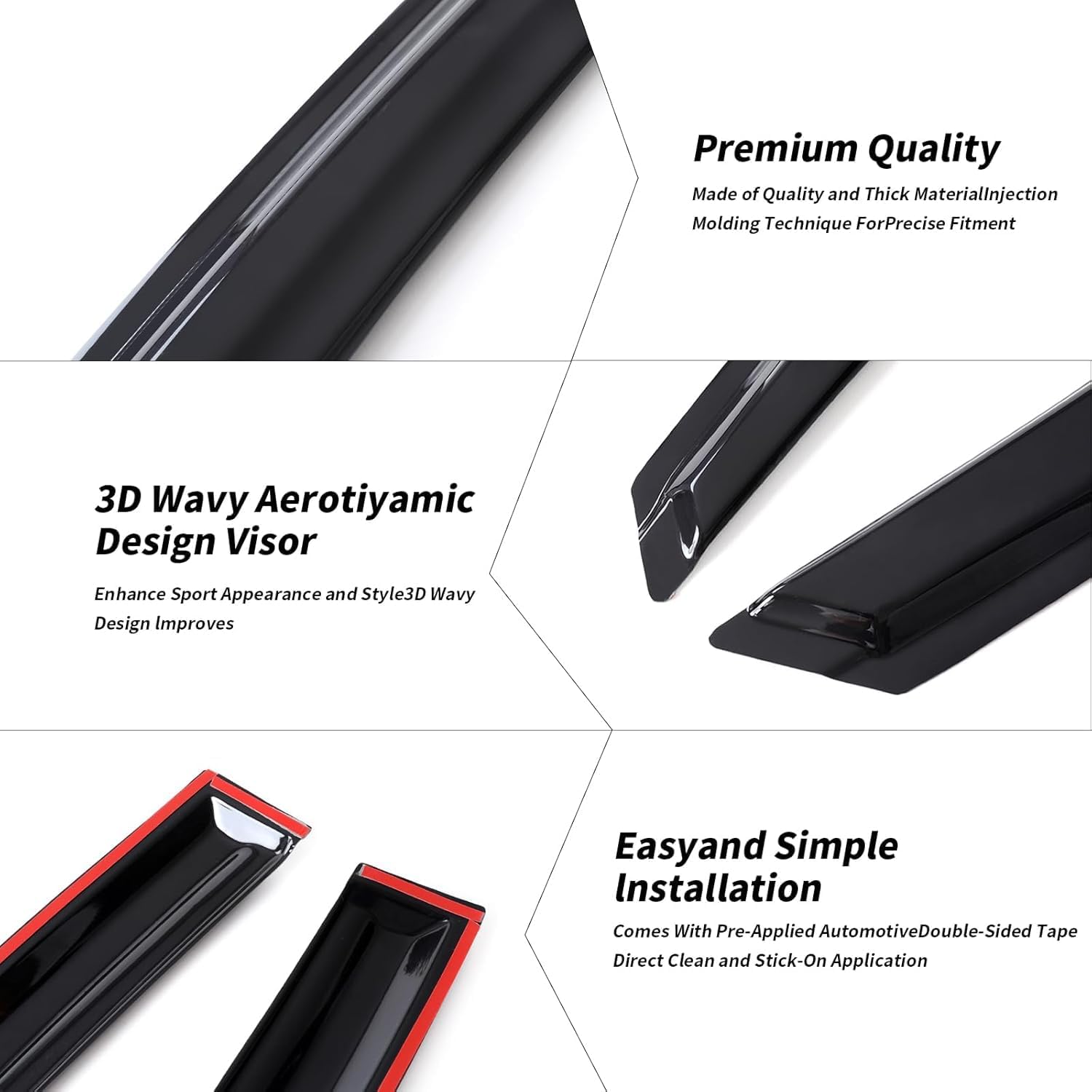 - Package Includes : 1 Complete Set of 4 piece(2 left and 2 Right) Smoke Window Visors