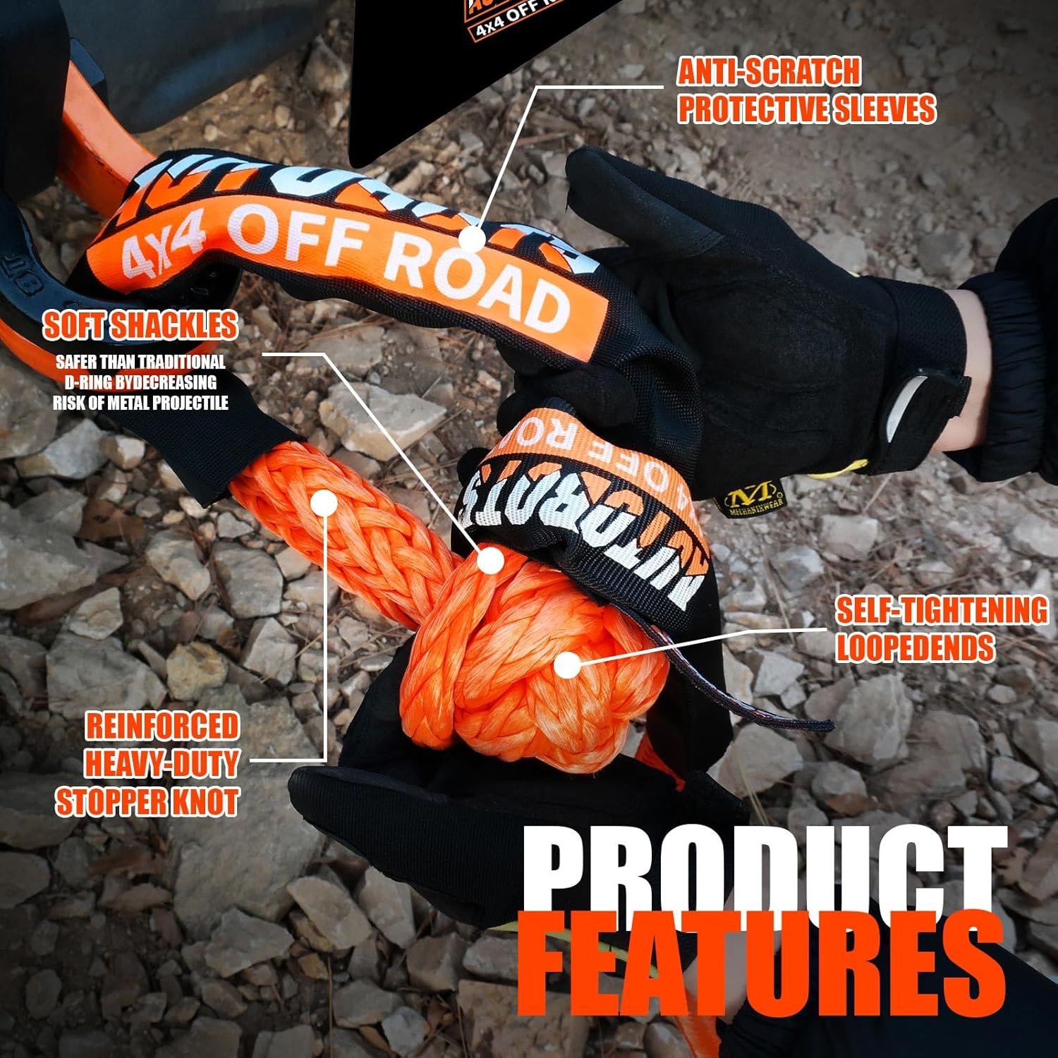AUTOBOTS Kinetic Recovery Rope 1" x 30'(48,600lbs)+2 Soft Shackles,Heavy Duty Tow Rope Tow Strap for Truck ATV UTV SUV Car,Offroad Recovery Kit