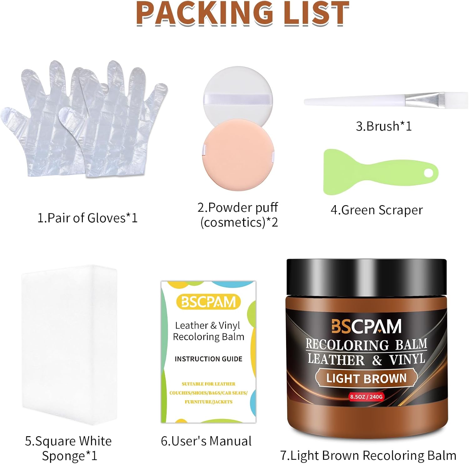 - Easy DIY Repairs: Leather repair kit includes, 1 Recoloring Balm + 1 Sponges + 2 Gloves + 2 Powder Puff + 1 Brush + 1 Putty Knife + User's Manual,meet any leather repair project